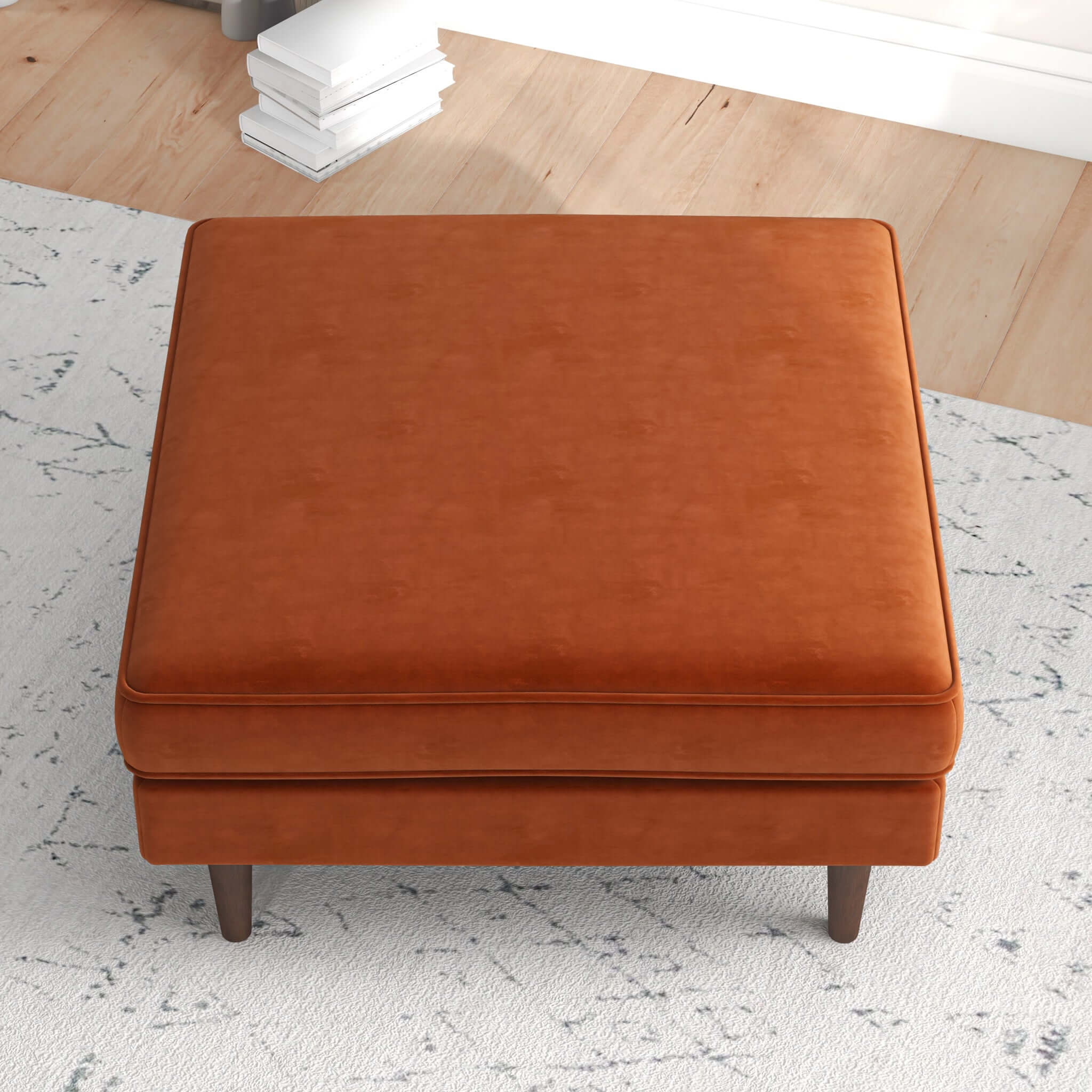 The mid-century modern solid wood leg ottoman is a stylish and functional piece of furniture that adds a touch of sophistication to any living space. Crafted with high-quality materials, this ottoman features a solid wood frame and legs, providing durability and stability. The design of this ottoman is inspired by the mid-century Modern era, characterized by clean lines, minimalistic shapes, and a focus on functionality. The solid wood legs are tapered and angled, adding a sleek and elegant touch to the overall aesthetic. The cushioned top of the ottoman is upholstered in a soft and luxurious fabric, providing a comfortable place to rest your feet or sit. The cushion is filled with high-density foam, ensuring long-lasting comfort and support. This ottoman is not only a great addition to a living room or lounge area, but it can also be used as a versatile piece of furniture in other houserooms. It can serve as extra seating in a bedroom or a stylish accent piece in a home office. With its timeless design and solid construction, the mid-century Modern solid wood leg ottoman is a perfect choice for those who appreciate both style and functionality in their furniture. It effortlessly combines classic mid-century design elements with modern comfort, making it a must-have piece for any contemporary home.