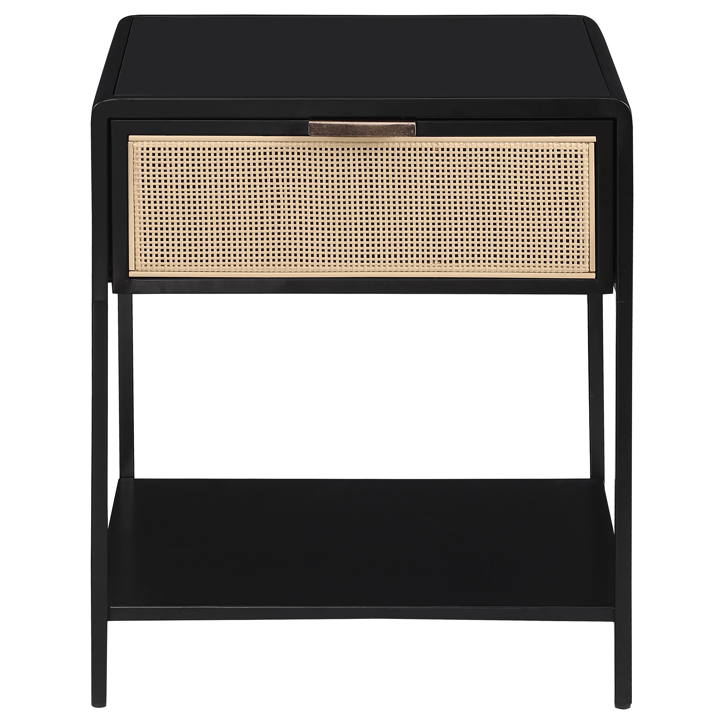 Amherst Black 1-Drawer Radio Weave Rattan Metal Side Table