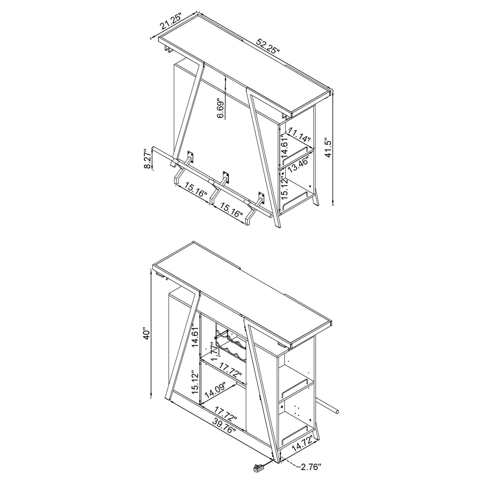 Home Bar 52.25"L X 21.25"W X 41.50"H