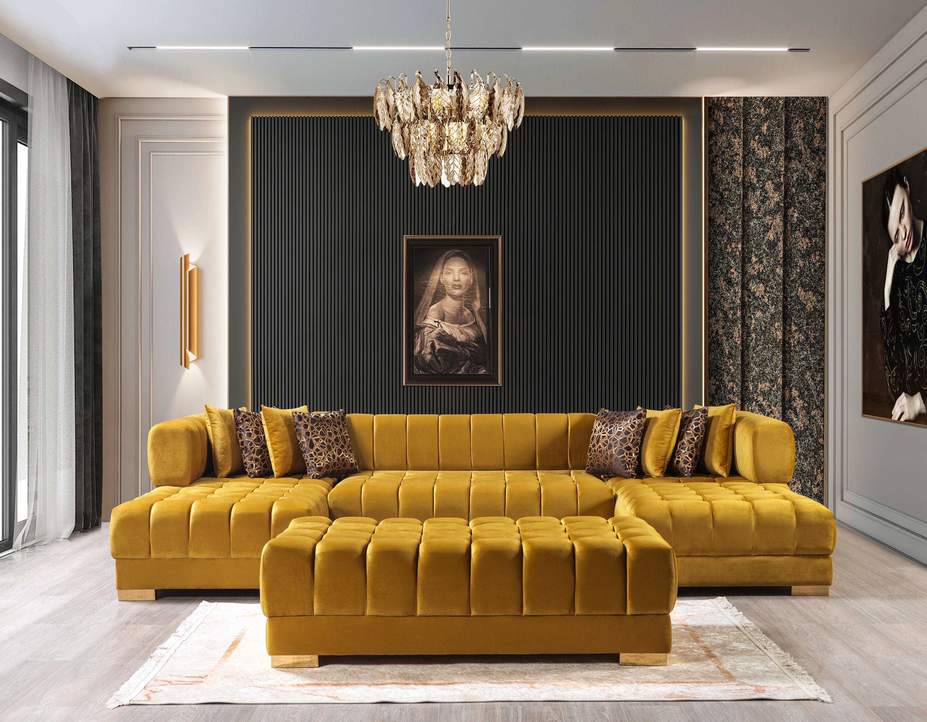 Imagine coming home after a long day and sinking into a lavish expanse of plush velvet—where sophistication meets comfort in a strikingly modern statement. The Ariana Mustard Velvet Double Chaise Sectional effortlessly transforms any living space into a showcase of bold style, inviting relaxation and conversation with its expansive U-shaped design and luxurious feel. Whether you’re hosting lively gatherings or seeking a tranquil sanctuary for yourself, this sectional provides ample seating, stunning visual interest, and a tactile experience that beckons touch. Its vibrant mustard hue injects artistry and warmth into both contemporary and eclectic settings, seamlessly elevating your home. Luna Furniture introduces Ariana Mustard Velvet Double Chaise Sectional to enhance the beauty of your living spaces. Luna Furniture