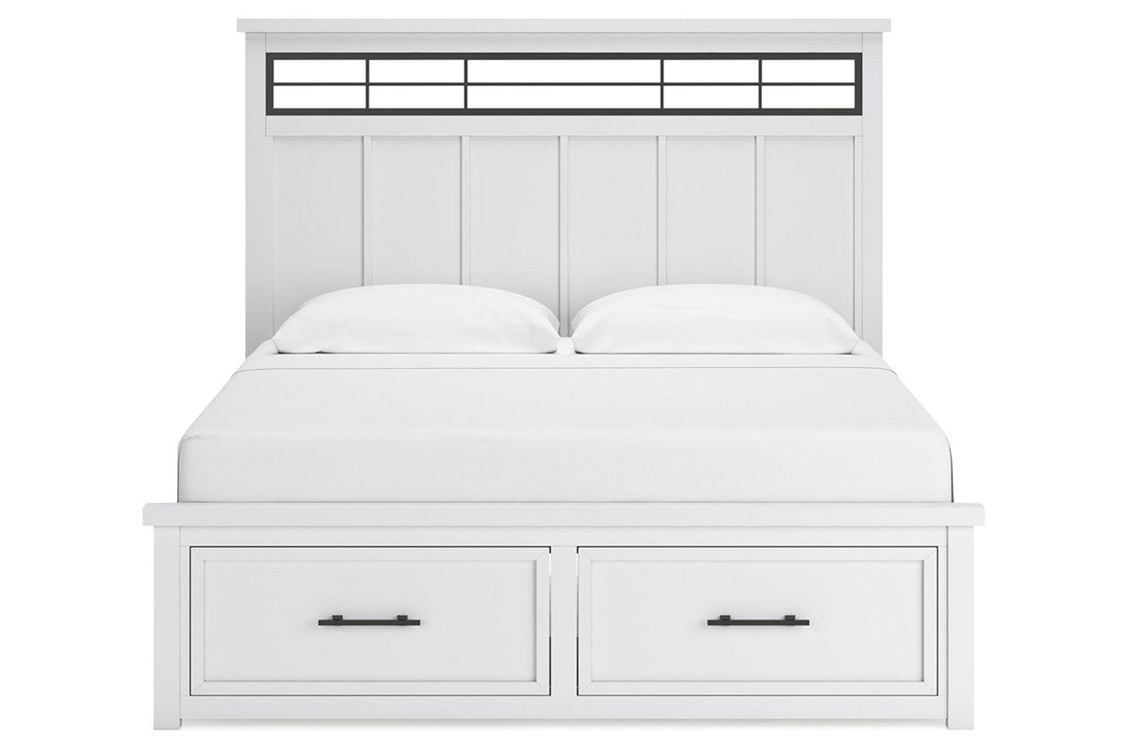 This king panel storage bed delivers casual style with substance. An inset metal detail on the headboard displays a unique take on modern farmhouse design. The bed's sturdy silhouette, classic white finish and black pulls exude a comfortably cozy vibe in your soothing sanctuary. Storage drawers are spacious enough for all your essentials. Luna Furniture introduces Ashbryn King Panel Storage Bed to enhance the beauty of your living spaces.