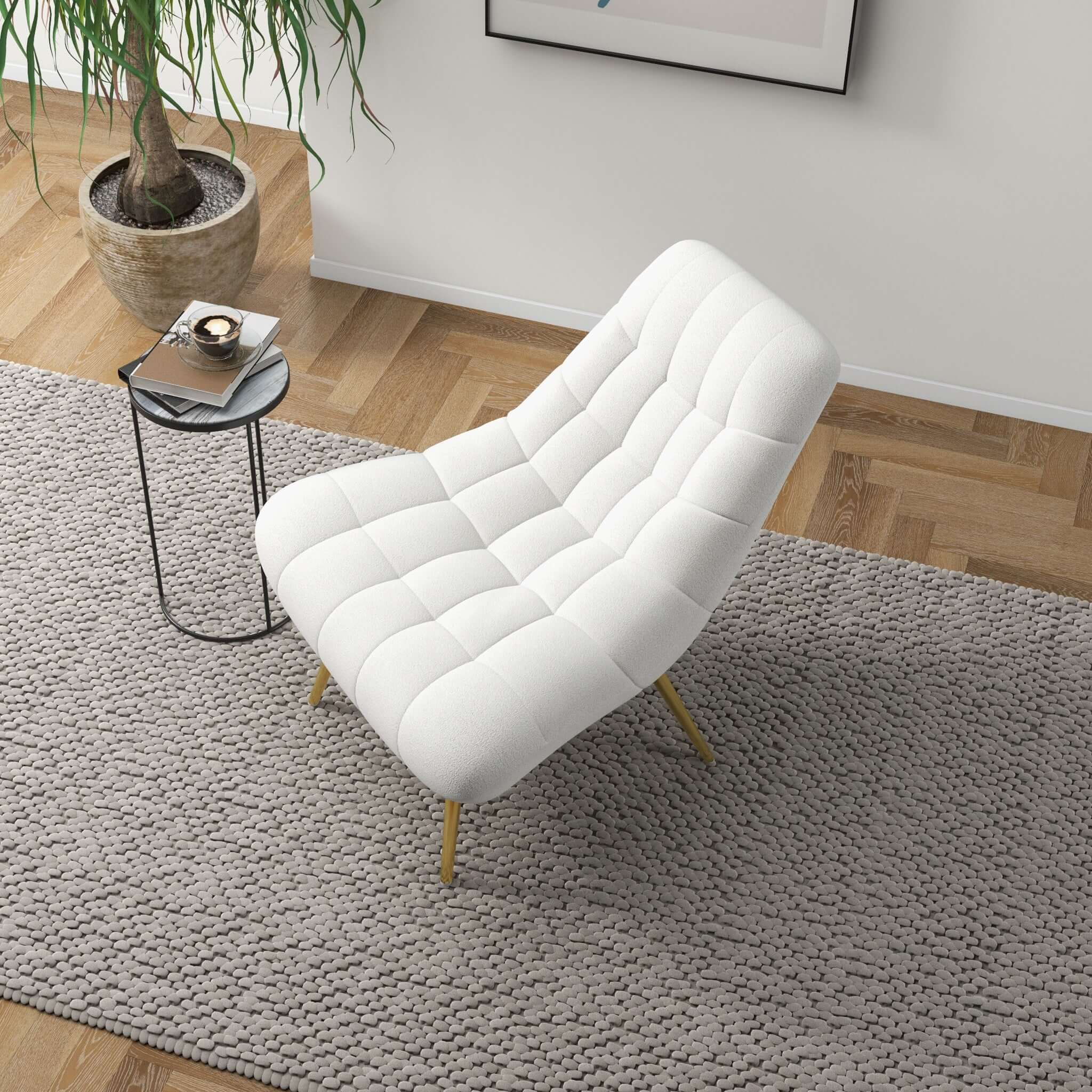Anchor your space in mid-century modern style with the French Boucle fabric lounge chair. Combining durable, top-quality craftsmanship and high-density foam, this lounge chair will provide great comfort and undoubtedly become the centerpiece of your living room, den, urban loft, condo, or home office. It is made of fabric and Can be cleaned with a non-abrasive cleaning solution followed by a quick microfiber cloth. Removable legs allow for simple delivery for tight spaces. Available in a variety of timeless colors, you're sure to find something that matches your decor.