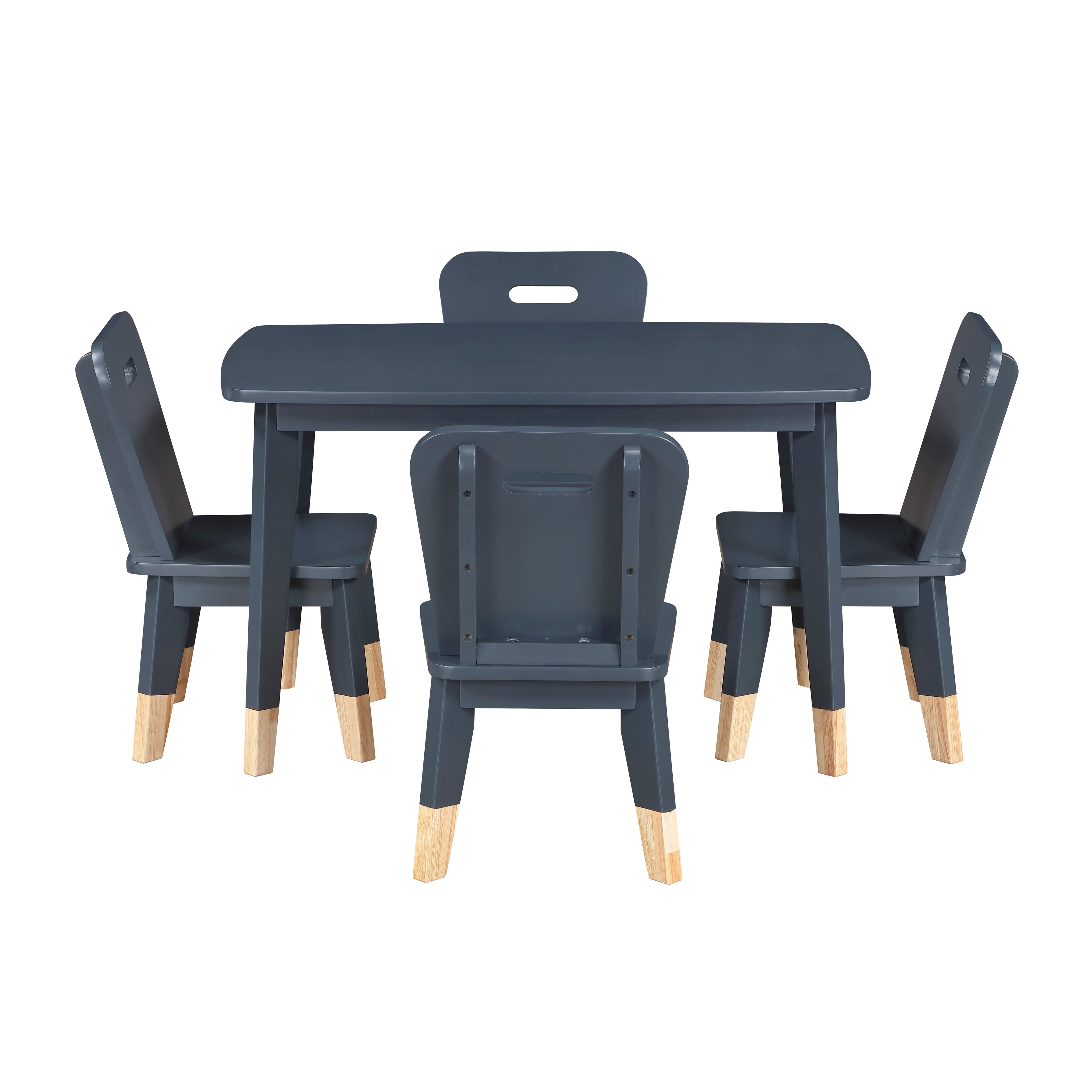 - Create the perfect hub for creativity and play with this premium 5-piece children’s table and chairs set. Crafted from wood for long-lasting durability, this set includes a spacious activity table and four sturdy chairs, comfortably seating up to four children. Available in sophisticated navy blue, classic white, or modern gray, the set features a stylish two-tone finish on the chairs that beautifully accents any playroom or bedroom while providing a stable surface for crafts and snacks.