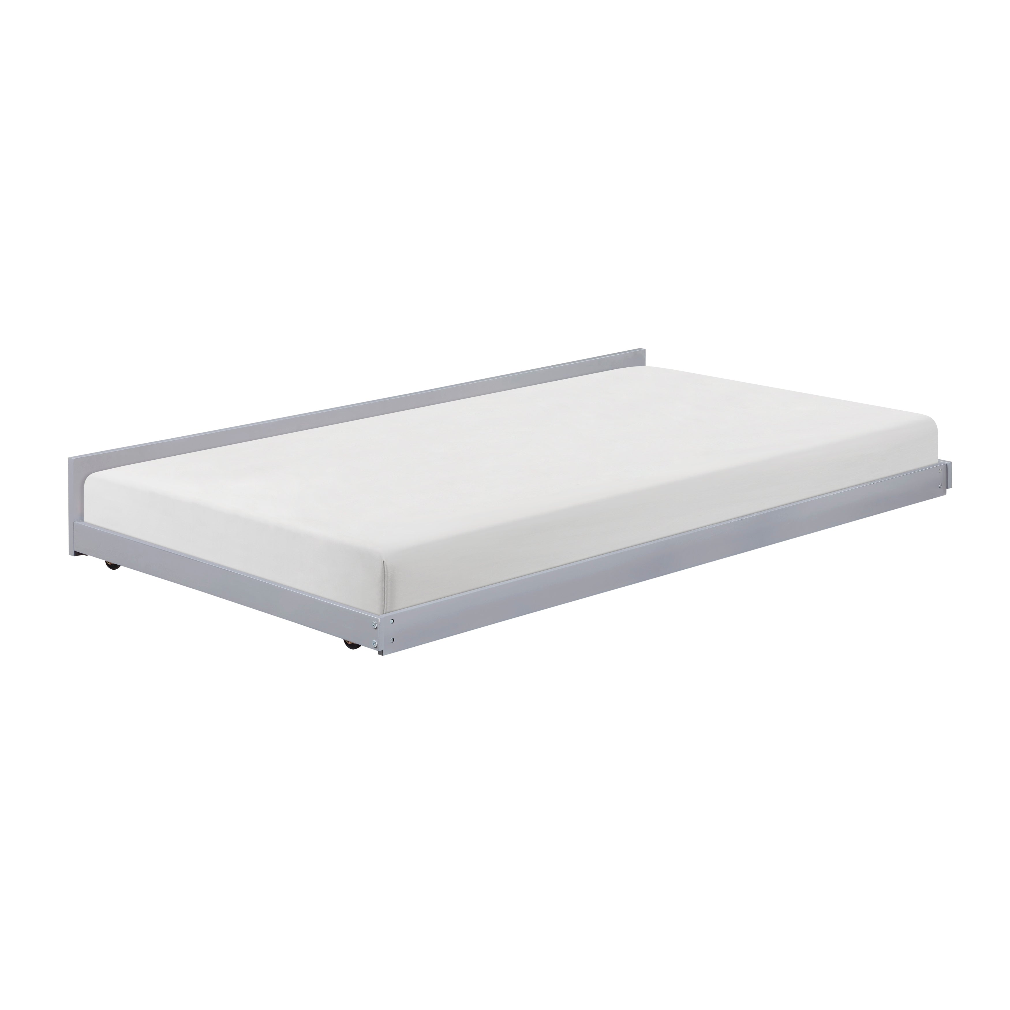 - Expand your sleeping capacity instantly with this versatile wood trundle bed, the perfect space-saving addition to any bedroom or guest suite. Available in timeless navy blue, classic white, or modern gray finishes, it tucks neatly beneath most standard bunk or platform beds. Engineered for convenience, it features smooth-gliding casters for easy access and a sturdy frame that ensures a comfortable night's rest for overnight guests without occupying extra floor space.