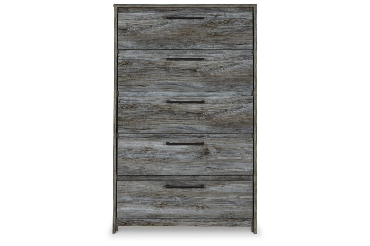 Beachy style and lots of storage go hand in hand with this chest. Its driftwood and surfer-inspired smoky finish creates a rustic look that's perfect for setting the scene of an island getaway. Five roomy drawers give you the space needed for stowing away clothes and more. Clean lines and modern handles provide an authentic look to be admired for years to come. — Luna Furniture introduces Baystorm Chest of Drawers to enhance the beauty of your living spaces.
