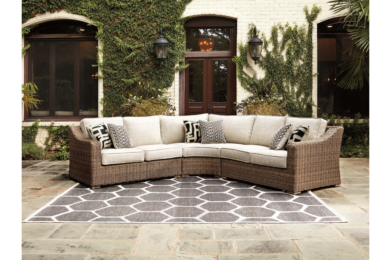 Beachcroft Beige 3-Piece Outdoor Sectional with Coffee Table and 2 End Tables from Ashley - Luna Furniture