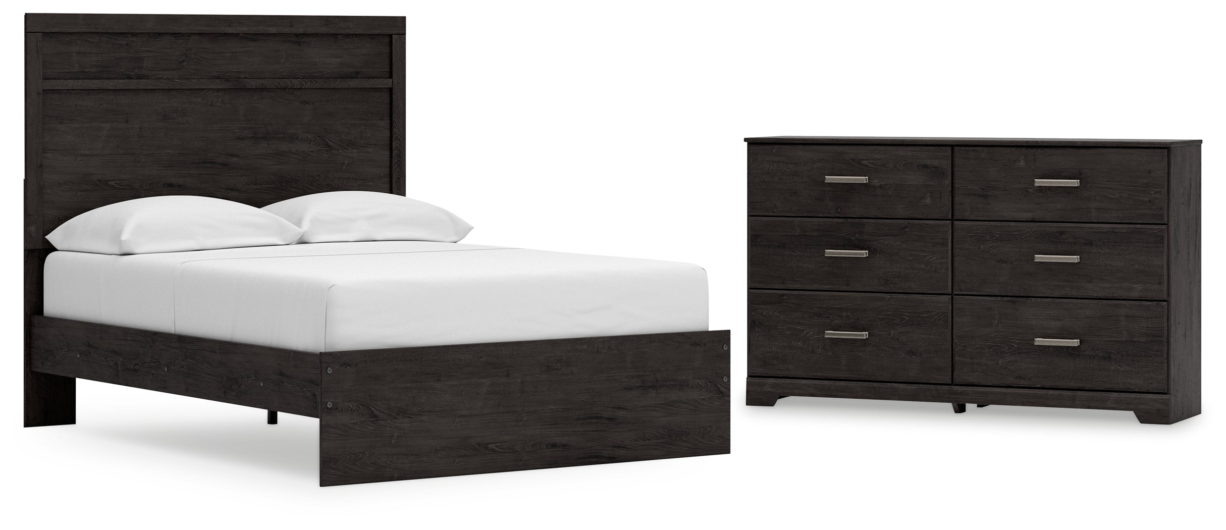 With its clean-lined look and modern attitude, this bedroom package is a fresh style awakening. A warm charcoal hue over replicated oak grain easily complements other furniture finishes. Smooth drawer fronts with antiqued pewter-tone handles complete the aesthetic.