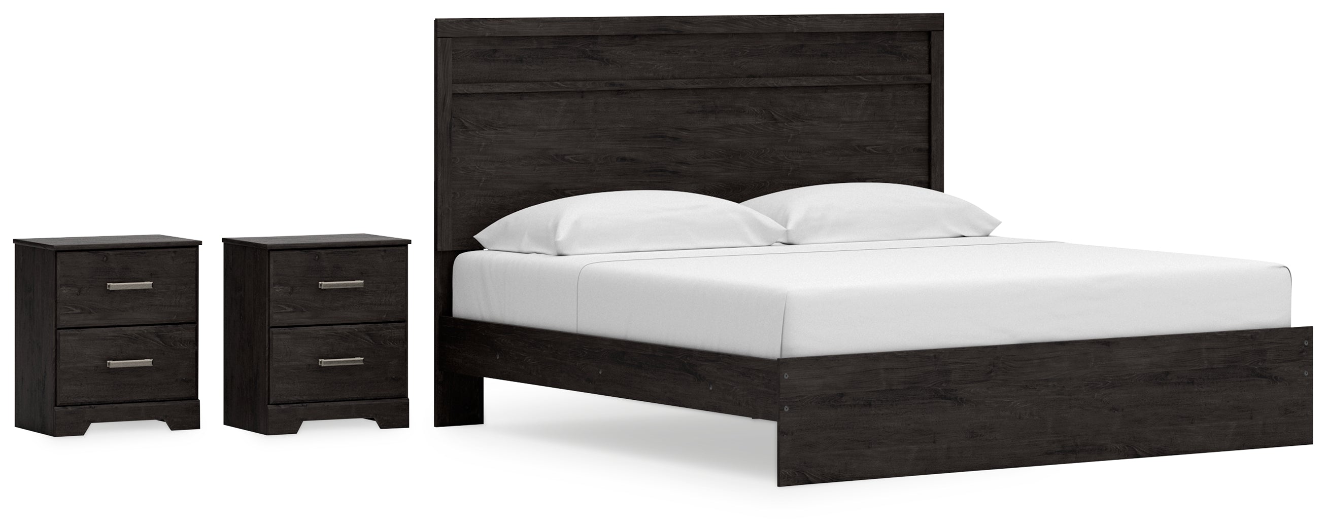 Belachime King Panel Bed with Dresser and 2 Nightstands in Charcoal
