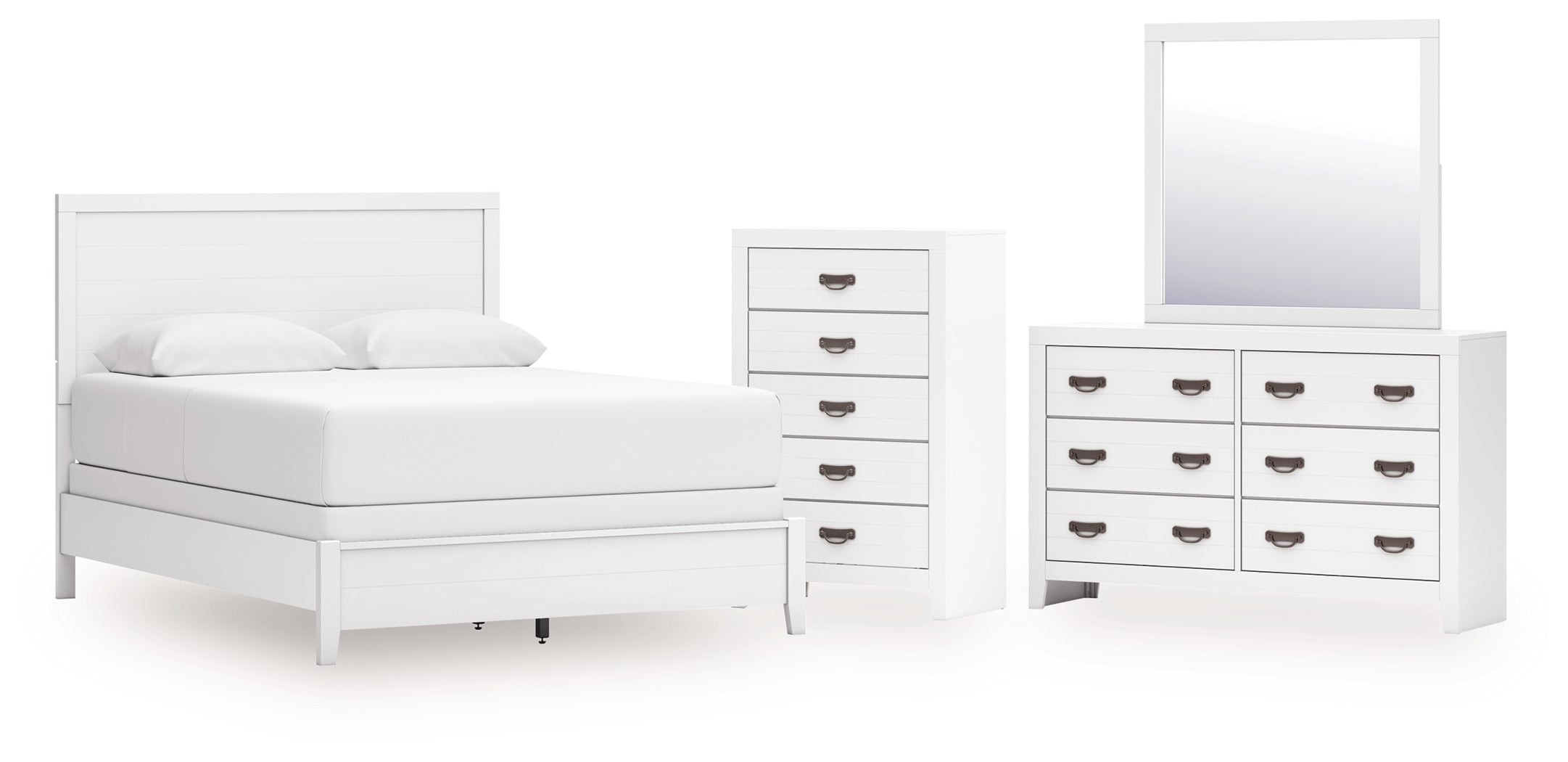 Binterglen Queen Panel Bed with Mirrored Dresser and Chest in White