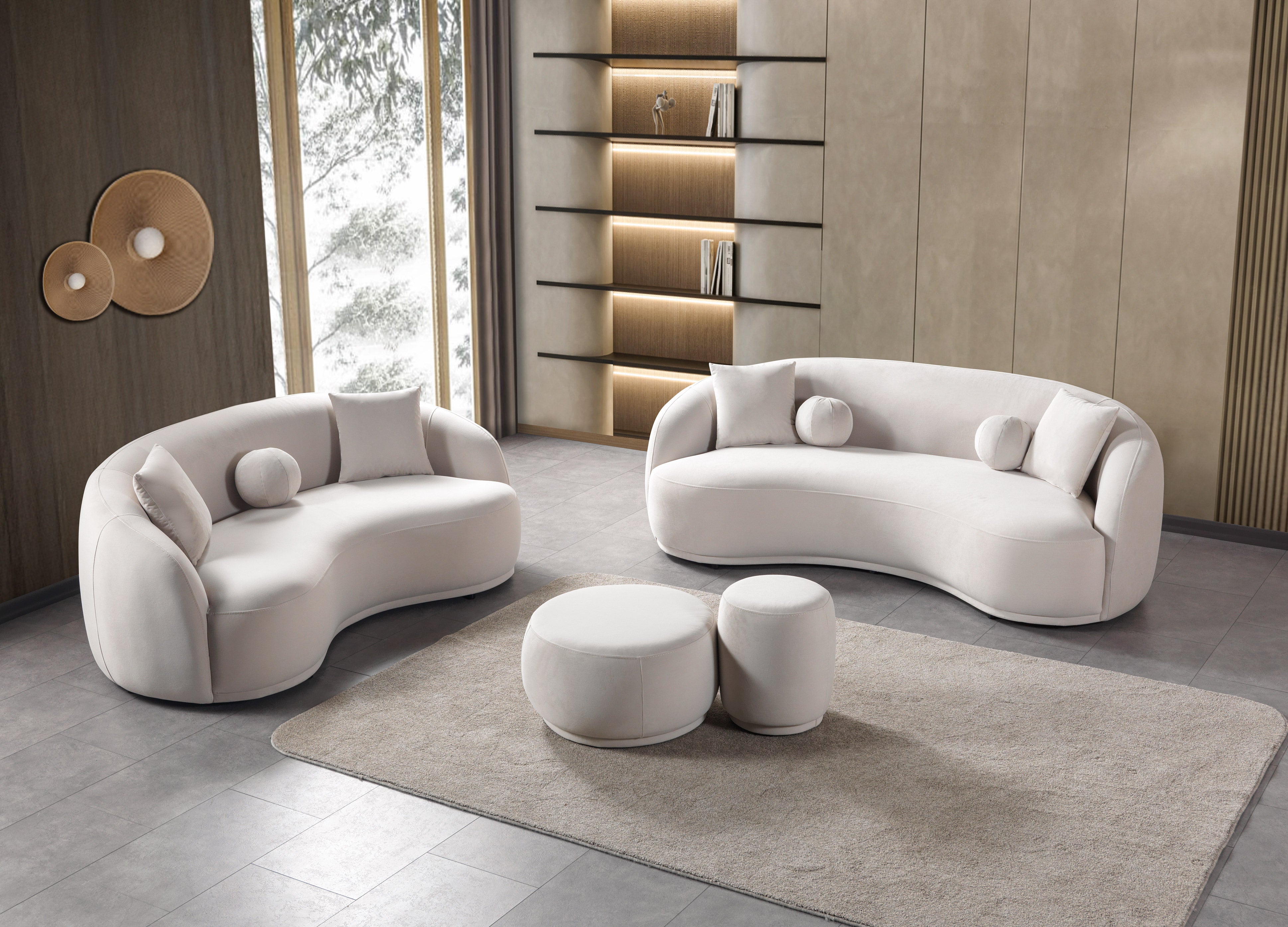 Transform your living space into a luxurious sanctuary with the Bonita Ivory Velvet Sofa 91" & Loveseat 81" Set. This exquisite collection from Nova Furniture brings a bold, post-modern look to your home with its stunning, gently curved silhouette and deep, inviting seating. Each piece is meticulously upholstered in a plush ivory velvet, offering a soft texture and a rich, vibrant hue that instantly revitalizes any decor. The clean, minimalist design is elevated by the included accent pillows, creating a perfect balance of artistic form and supreme comfort. The Bonita set is the ideal choice for those who want to make a sophisticated style statement without compromising on relaxation. Luna Furniture offers this exceptional set to help you create a truly stylish and inviting home.