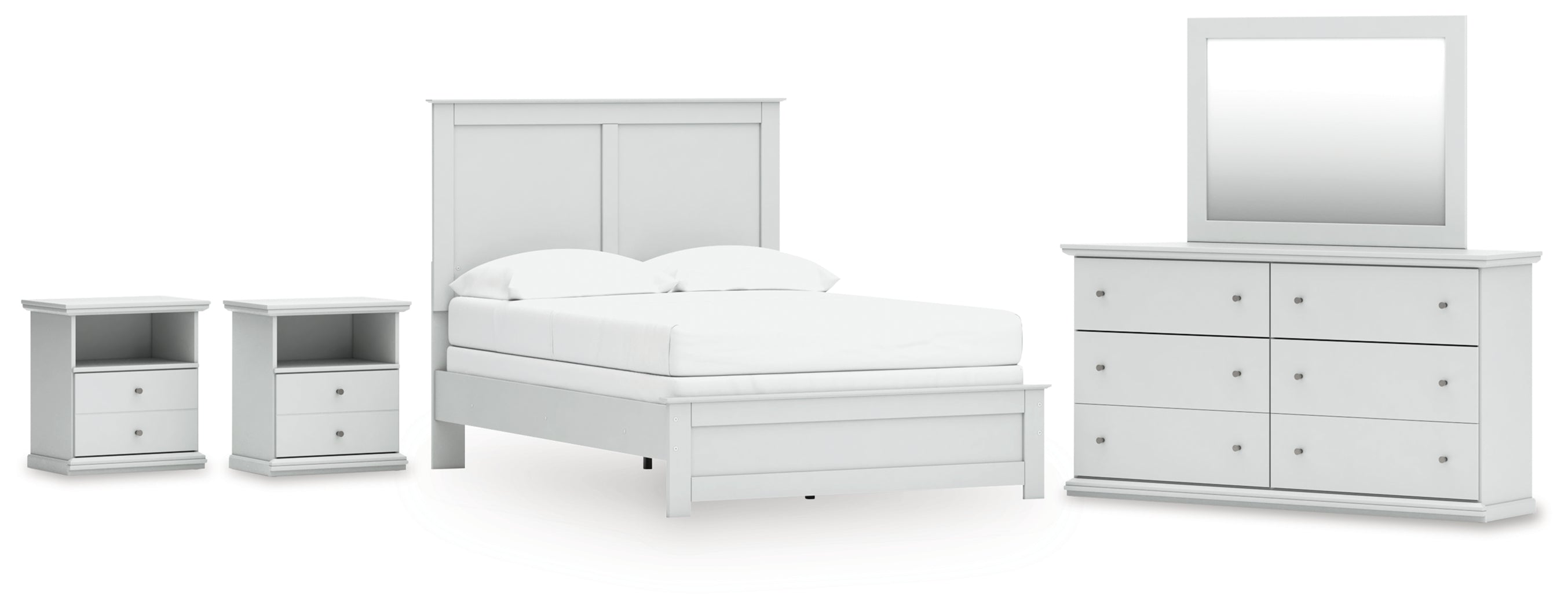 Bostwick Shoals Full Panel Bed with Mirrored Dresser and 2 Nightstands in White