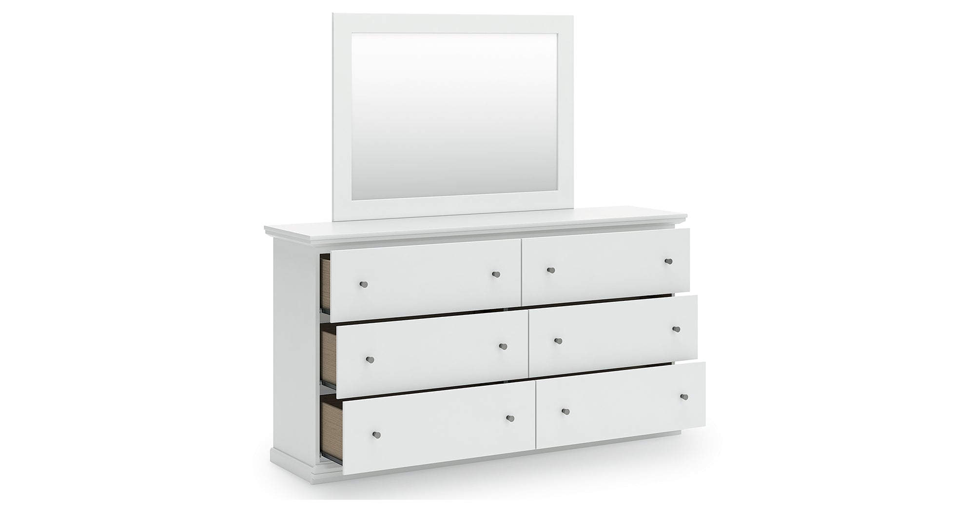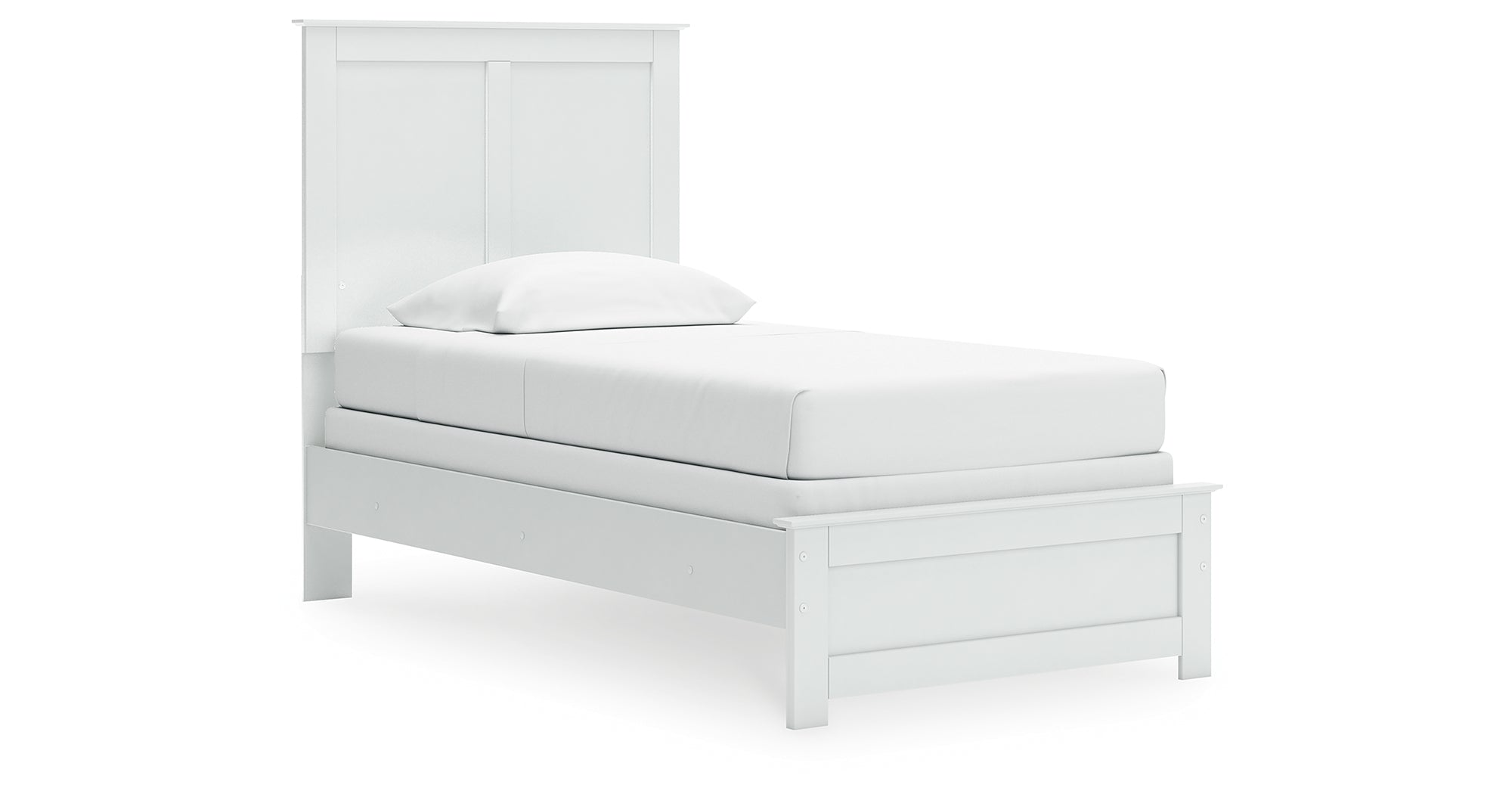 Bostwick Shoals Twin Panel Bed with Mirrored Dresser and Nightstand in White