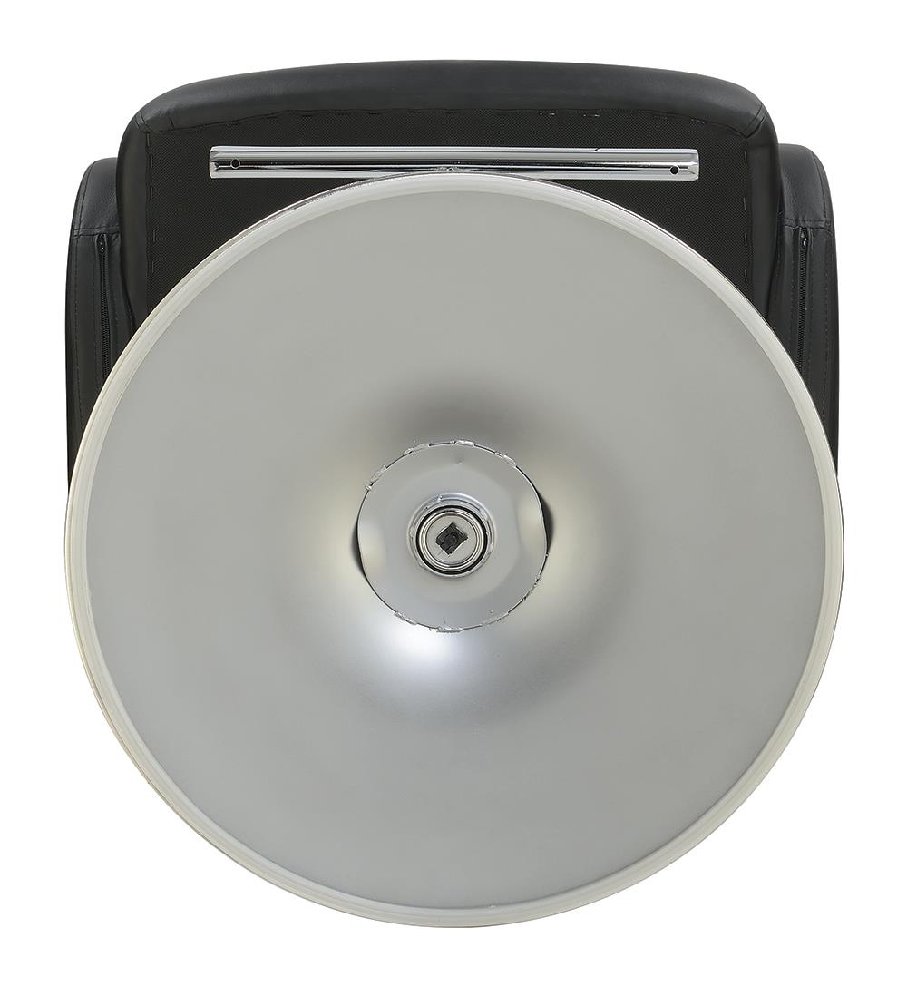 Expressive and interesting design elements team up to deliver a fun look. Make a modern or transitional space flush with style. This bar stool borrows from a retro theme with a hint of barbershop charm. An ergonomically positive seat, back, and arms encased in black upholstery match with virtually any palette. A bright, shiny chrome base with a bar footrest looks sleek and dynamic, and adjustable seat heights accommodate a bar table or counter.
