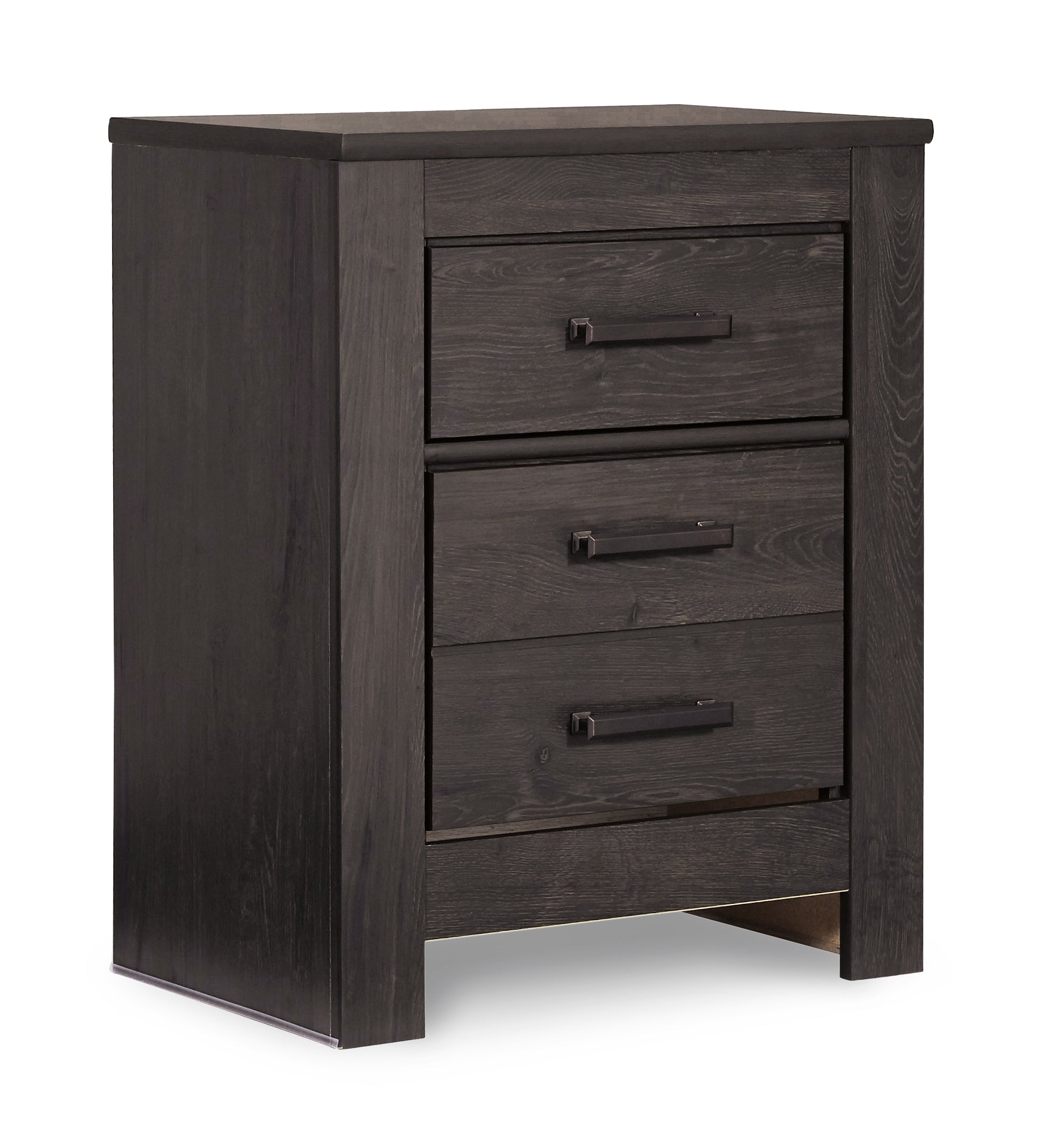 Dark charcoal finish over replicated oak grain