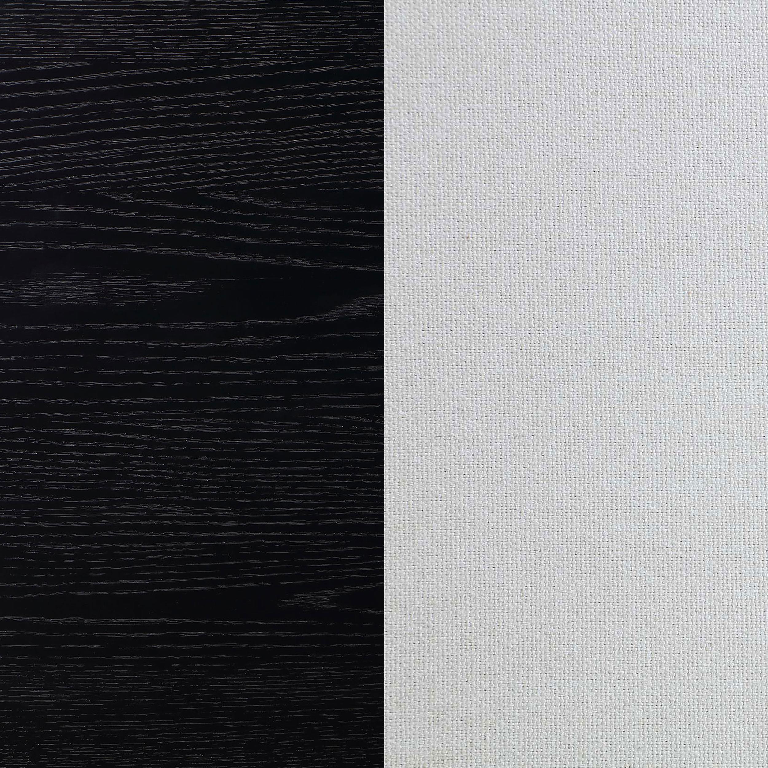 A notable color contrast and ultra-dramatic look make an impact in your modern or transitional dining space, creating a focal point worthy of consideration. This nine-piece wood and fabric dining set is adaptable to embellish a host of settings important to your everyday living. Distressed black finish wood construction on all pieces gains attention to a minimalist table design with straight, flat leg sections under a sleek top with linear silhouetting and a dimensional top chamfer curving along its edges. Chairs offer a clean silhouette with black finish wood framing, tapered legs, and ornate notched tops with linear carvings thrown in for extra dimension. Soft ivory fabric upholstery is intriguingly placed on both sides of top cushions and over a padded seat.