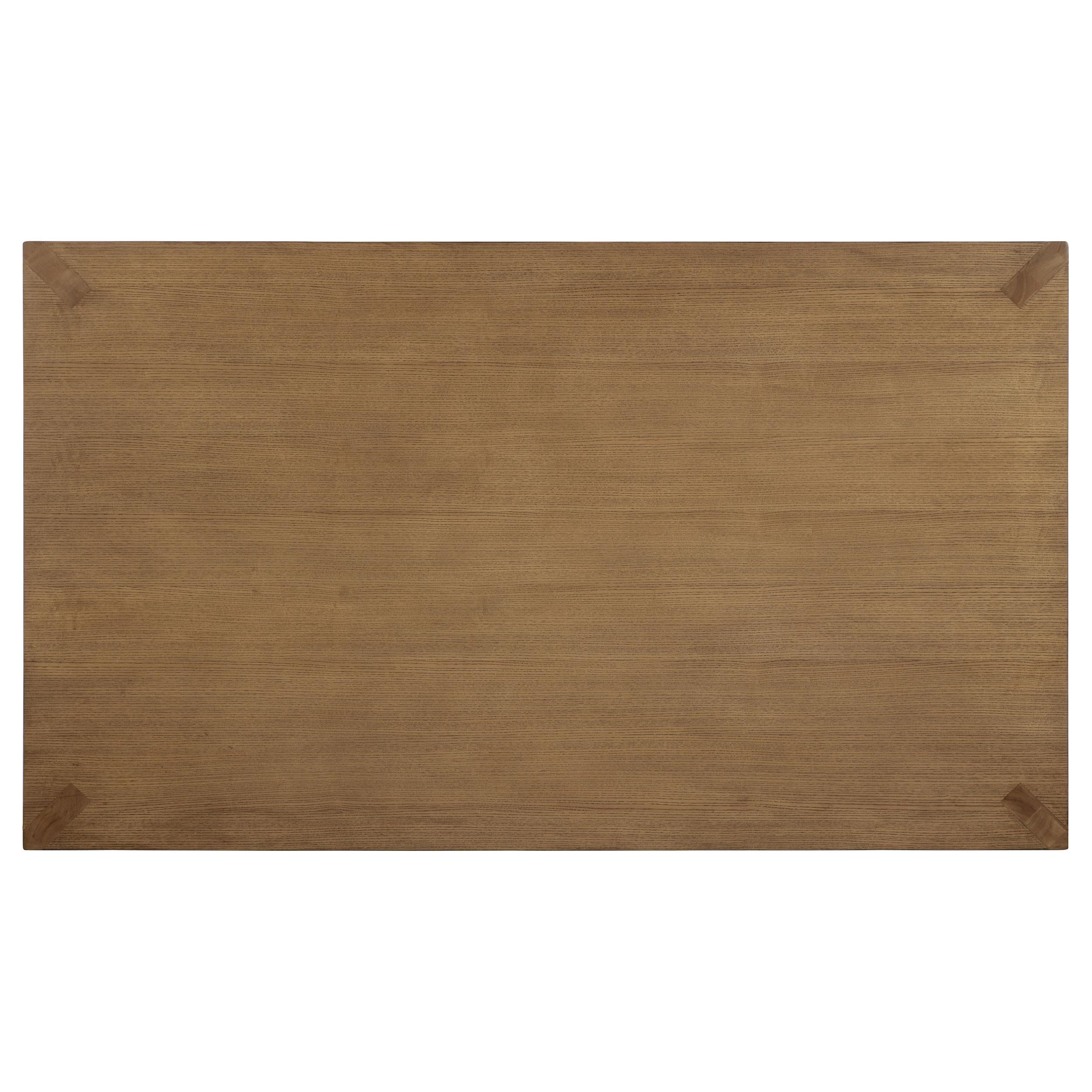 Introduce tailored style with a modern rectangular dining table. Its delivers fresh style with angular details and silhouetting, including angled legs. A natural brown wood grain finish offers inviting versatility, complementing a variety of surrounding decor motifs. The table boasts ash veneer with Asian hardwood and engineered wood construction that delivers both stylish presence and inviting durability. Add seasonal linens to complete a refined dining room space.