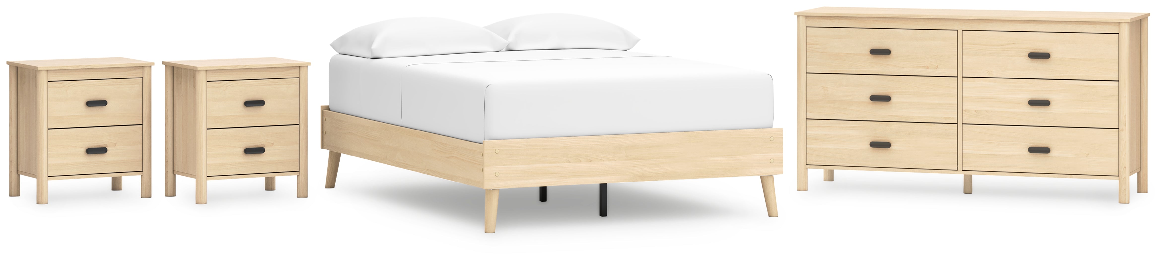 Cabinella Full Platform Bed with Dresser and 2 Nightstands in Tan