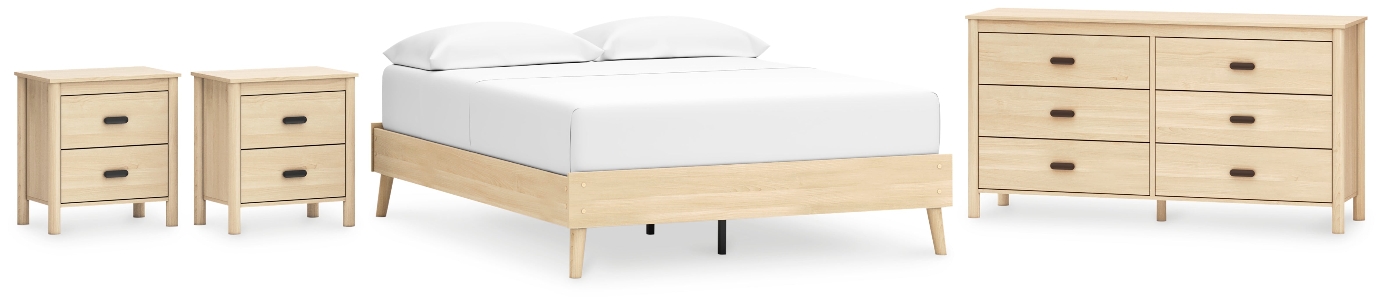 Cabinella Queen Platform Bed with Dresser and 2 Nightstands in Tan