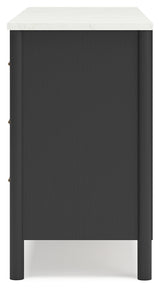 Cadmori Queen Upholstered Panel Bed with Dresser in Black/White