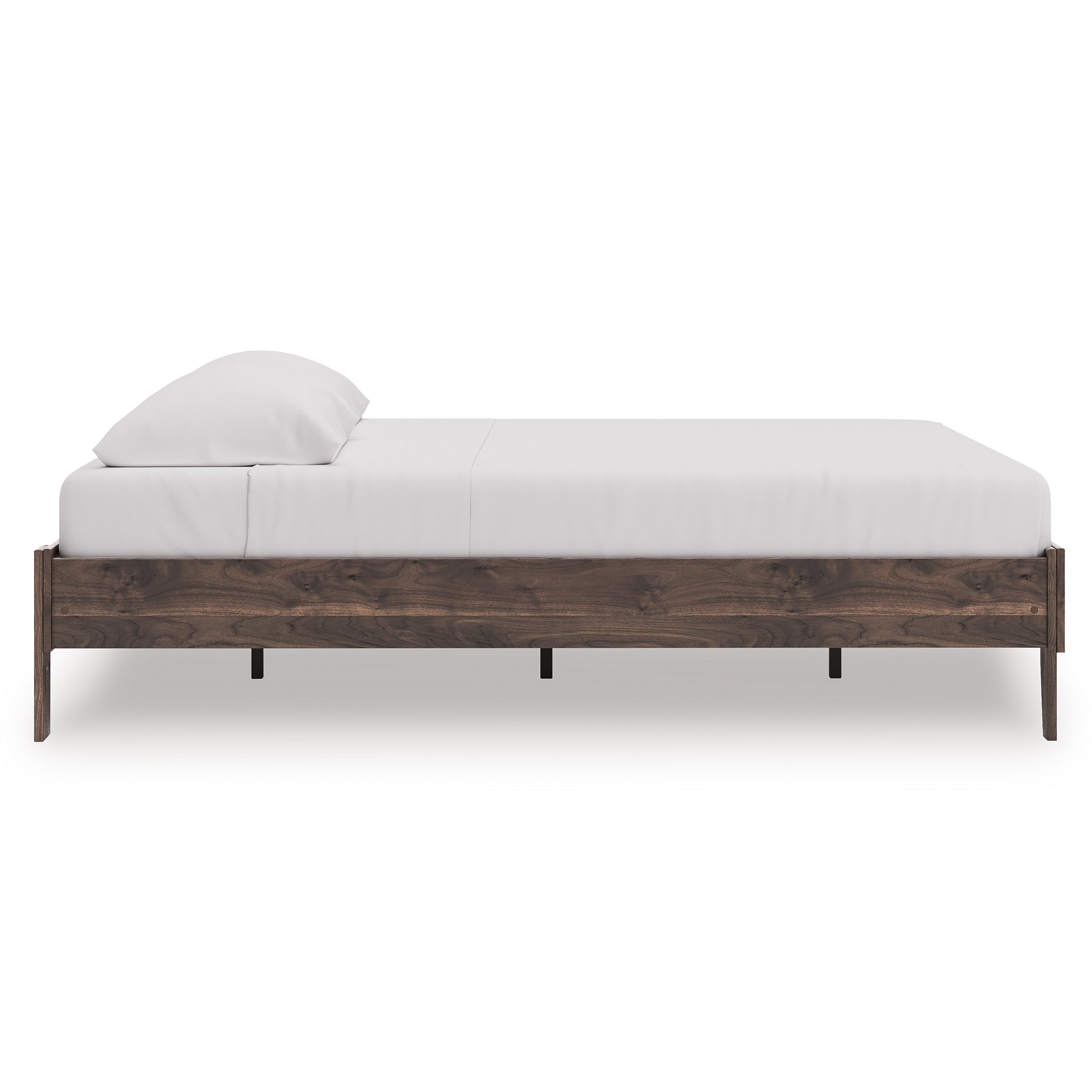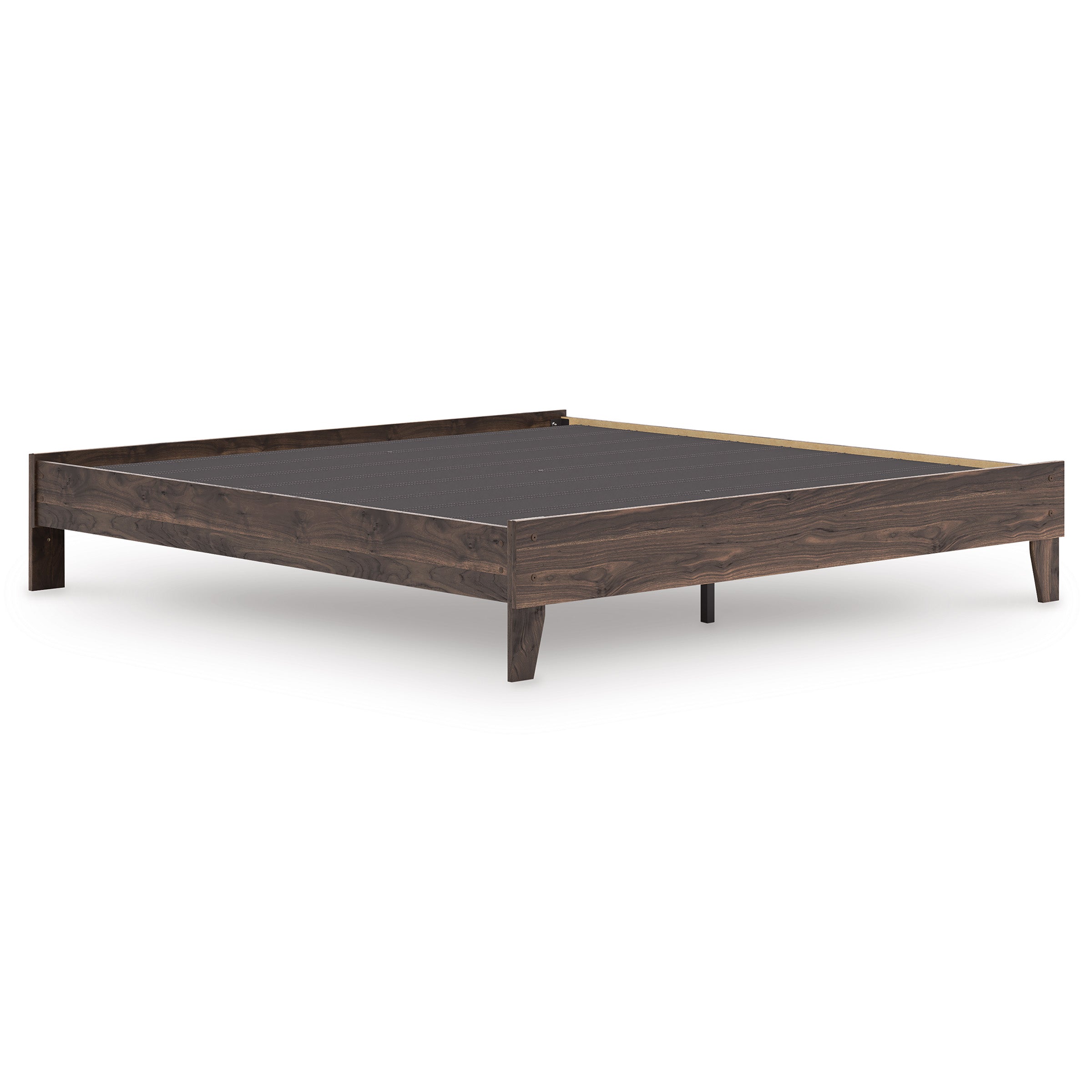At the intersection of classic cool and chic sophistication you’ll find this king platform bed. The rich brown finish over replicated walnut wood grain offers an authentic touch that plays well any way you style it. Minimal yet elegant in its design, this bed keeps your home decor grounded while elevating your modern style. — Luna Furniture introduces Calverson King Platform Bed to enhance the beauty of your living spaces.