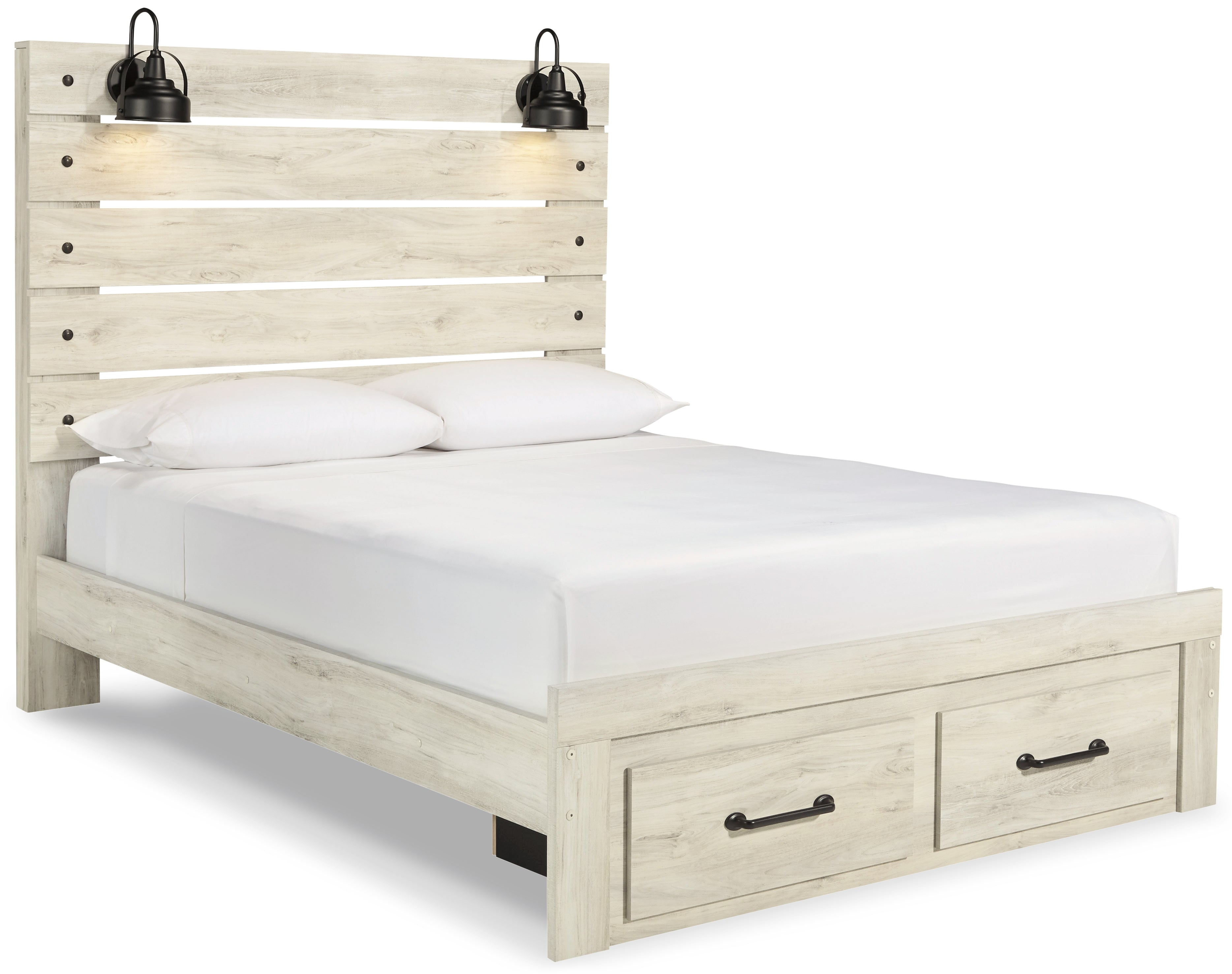 Cambeck Queen Panel Bed with 2 Storage Drawers with Dresser in Whitewash