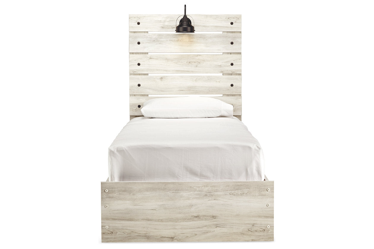 What a delightful take on rustic industrial style. Whether modern loft or modern farmhouse, this twin panel bed makes itself at home. The wispy whitewash palette enhances without covering the grain for that weathered look you crave. Love to read in bed? You’re sure to find the retro-chic light sconce and USB plug-ins on the open-slat style headboard such a bright idea. Luna Furniture introduces Cambeck Twin Panel Bed to enhance the beauty of your living spaces.