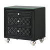 Complete your glamorous bedroom ensemble with the Cameo Black Nightstand, a statement piece that radiates luxury and drama. Upholstered in soft black fabric and accented with diamond-quilted tufting, this nightstand adds texture and elegance to your space. A sleek 8mm tempered glass top enhances durability and provides a smooth surface for your nighttime essentials, while crystal-inspired knobs bring just the right amount of sparkle. Luna Furniture introduces the Cameo Black Nightstand to add refinement and charm to your bedroom retreat.