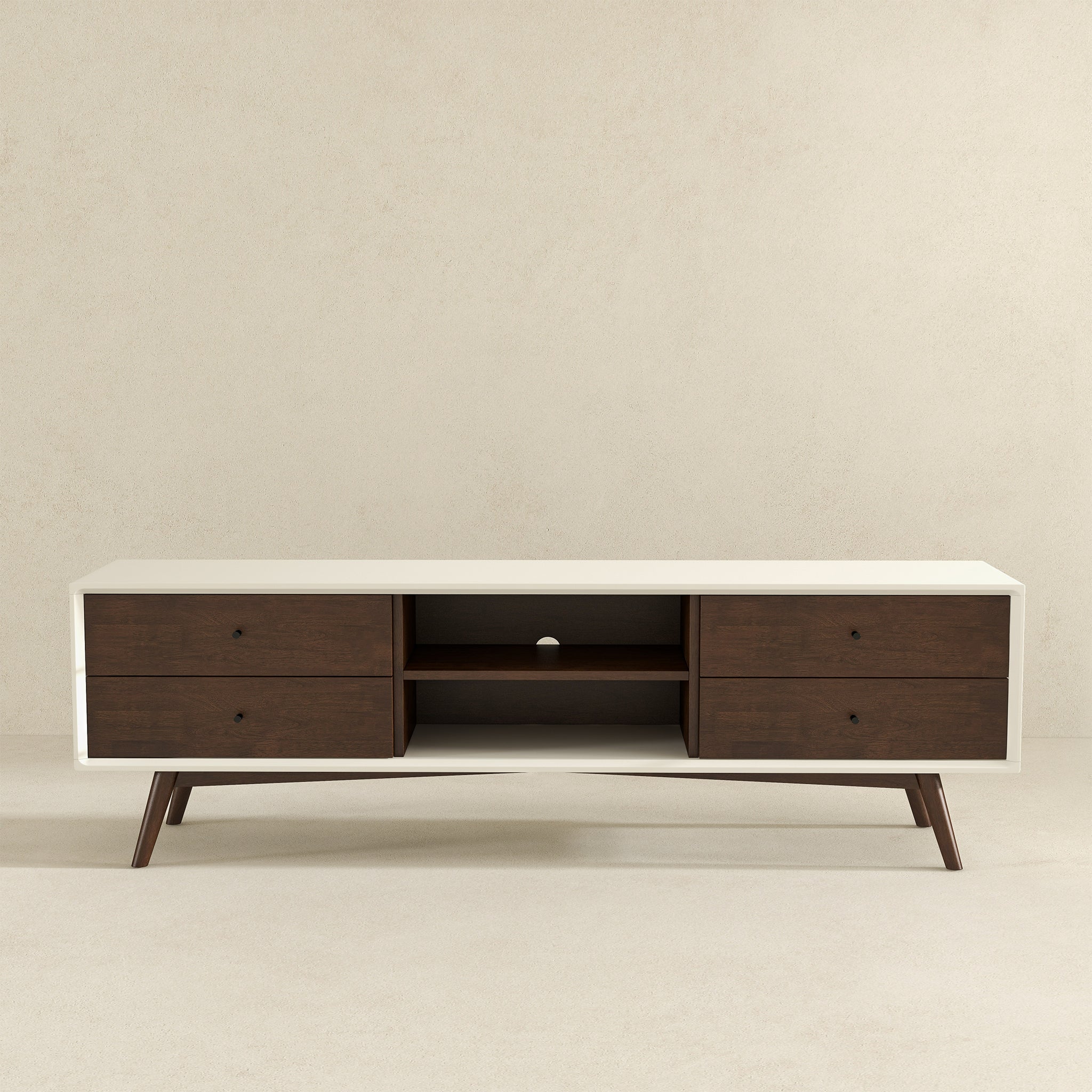 Caroline Mid Century Modern Style Walnut White TV Stand up to 72"