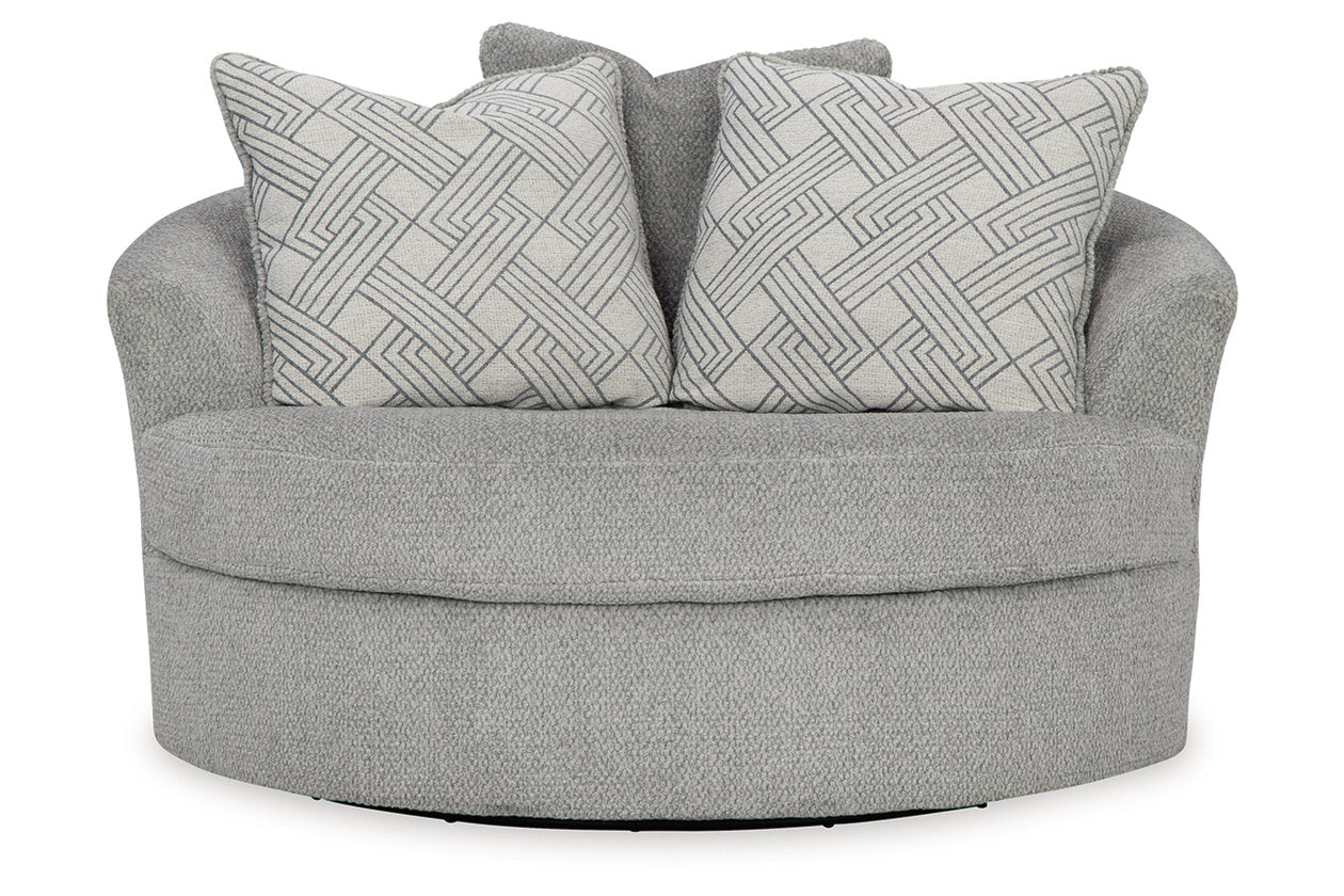 Casselbury Cement Oversized Swivel Chair and Ottoman