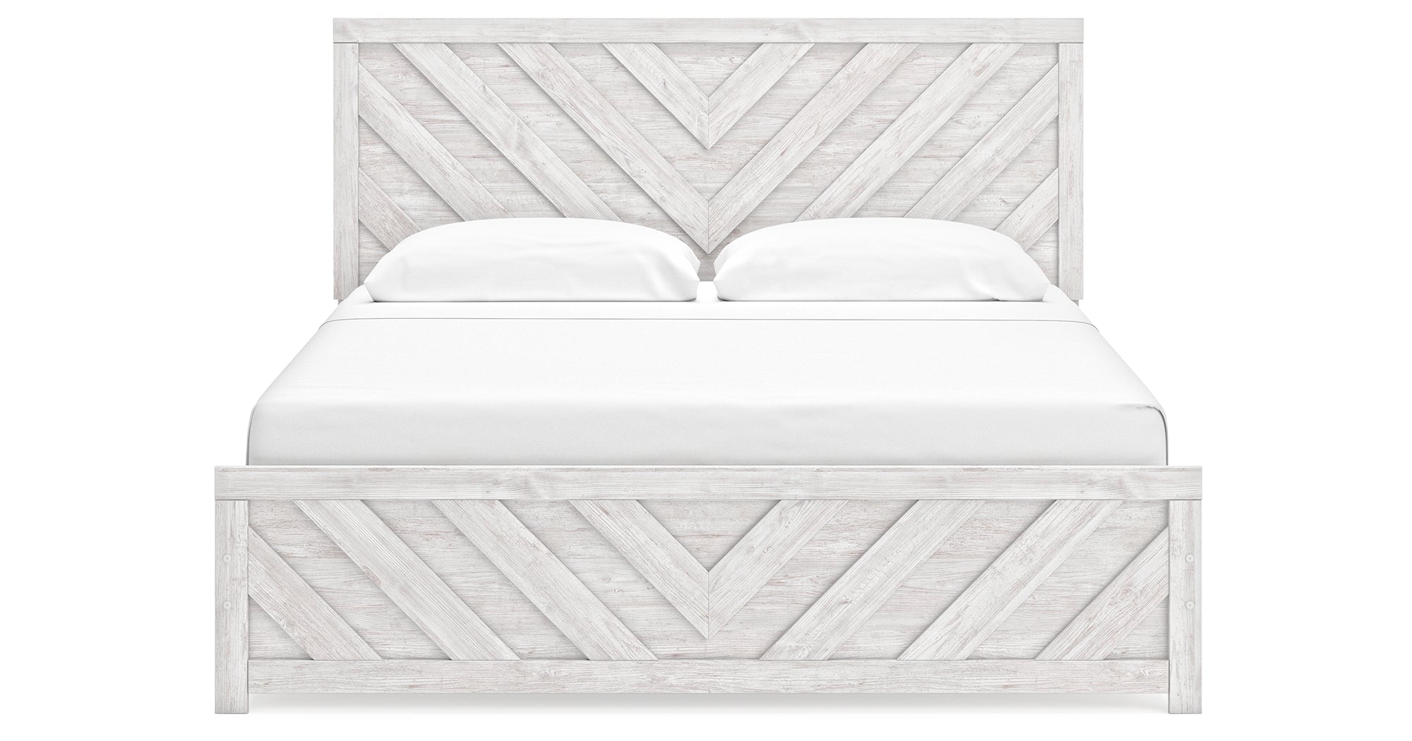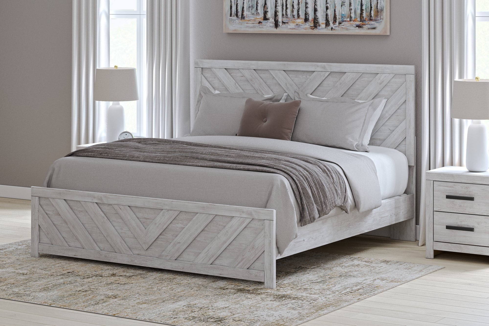 Cayboni King Panel Bed with 2 Nightstands in Whitewash