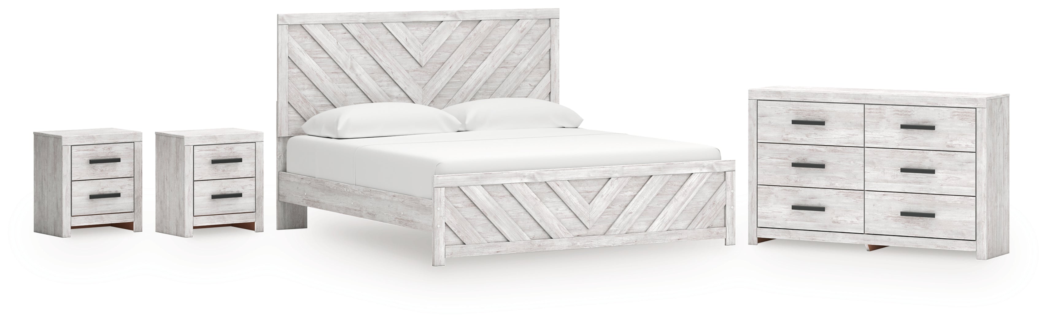 Cayboni King Panel Bed with Dresser and 2 Nightstands in Whitewash