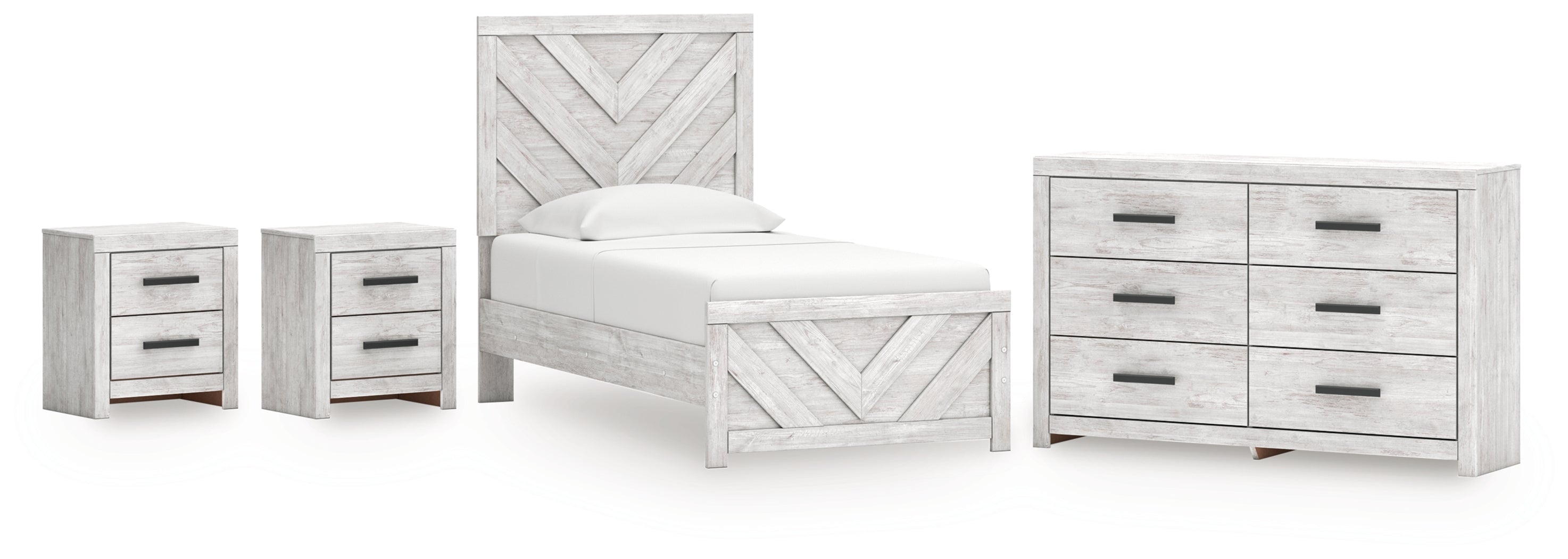 Cayboni Twin Panel Bed with Dresser and 2 Nightstands in Whitewash