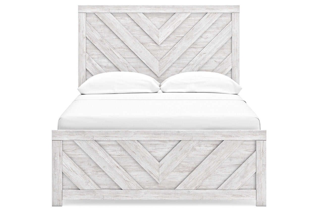 Charmingly designed, this full panel bed embraces the aesthetics of countryside living and repurposes them for modern settings. Its whitewash paint, replicating the wear and tear of time, appeals to your love of vintage character. And a chic chevron pattern on the headboard and footboard keeps your bedroom effortlessly on trend. Luna Furniture introduces Cayboni Full Panel Bed to enhance the beauty of your living spaces.