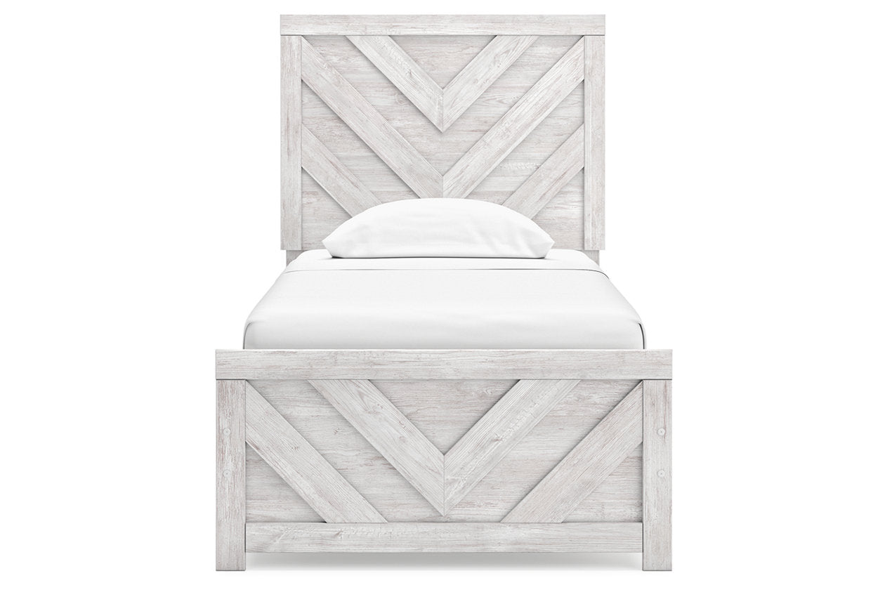 Charmingly designed, this twin panel bed embraces the aesthetics of countryside living and repurposes them for modern settings. Its whitewash paint, replicating the wear and tear of time, appeals to your love of vintage character. And a chic chevron pattern on the headboard and footboard keeps your bedroom effortlessly on trend. Luna Furniture introduces Cayboni Twin Panel Bed to enhance the beauty of your living spaces.