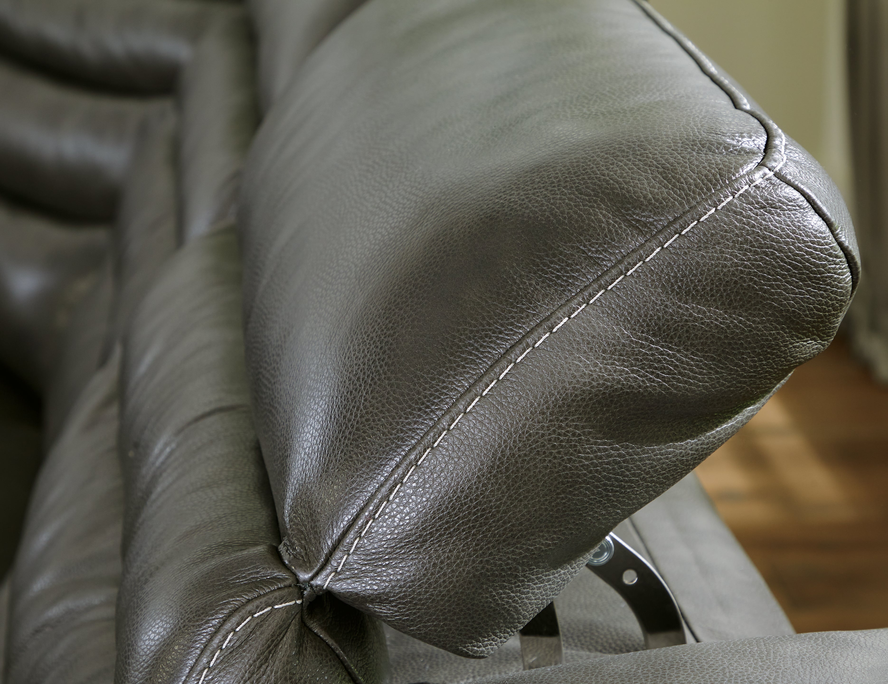- Genuine leather typically covers inside areas such as the back, seat and arm cushions
