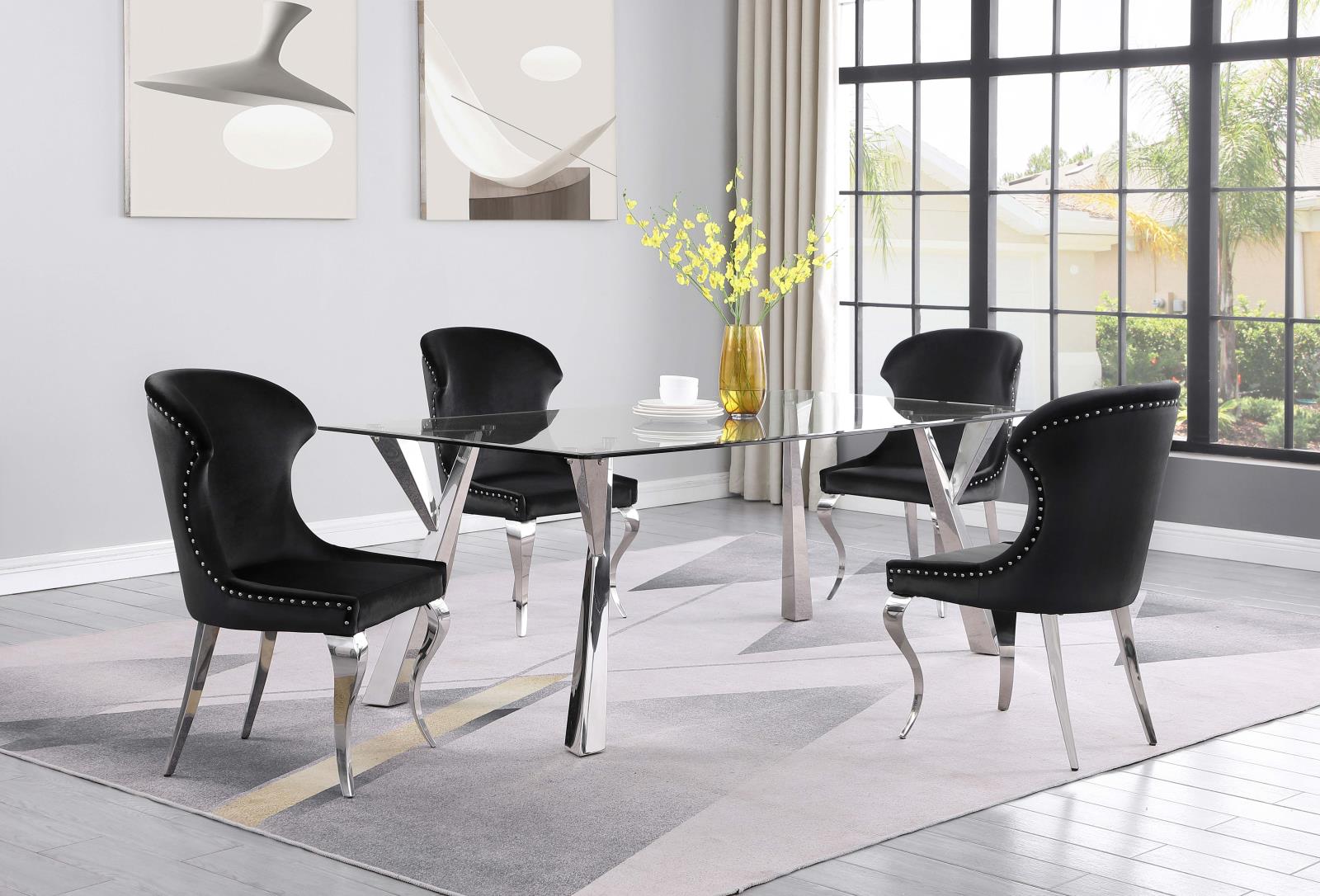 Cheyanne Chrome and Black Upholstered Wingback Side Chair with Nailhead Trim, Set of 2