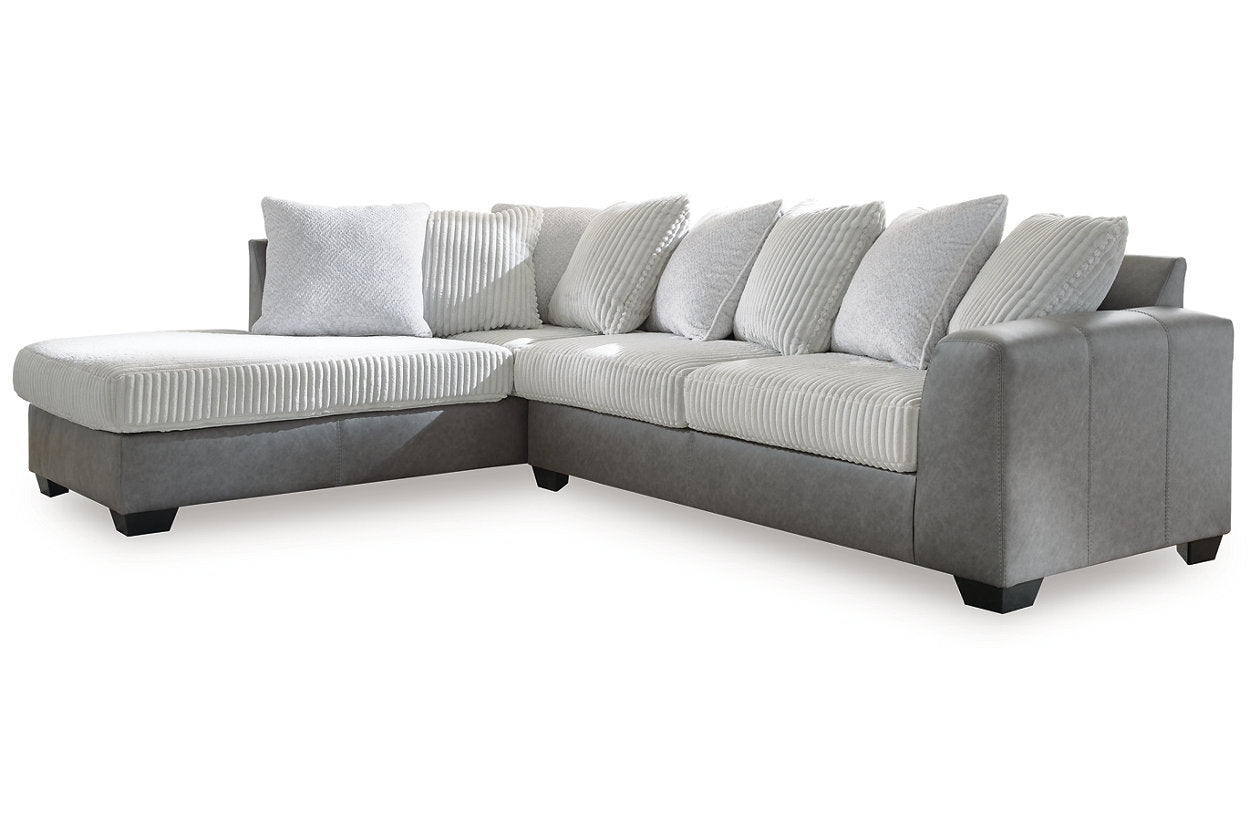 You want your living room to reflect your ultra-cool character. Introducing: this sectional with chaise. Its combination of retro-cool jumbo cord and sleek faux leather takes a unique approach to contemporary aesthetics. For a finishing touch, pillows provide a stylish scatter back silhouette. Luna Furniture introduces Clairette Court 2-Piece Sectional with Chaise to enhance the beauty of your living spaces.