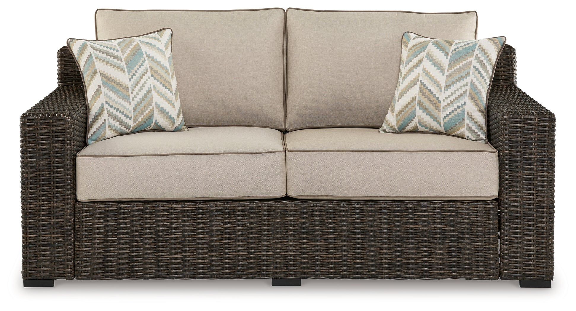 Coastline Bay Brown Outdoor Loveseat with Cushion from Ashley - Luna Furniture