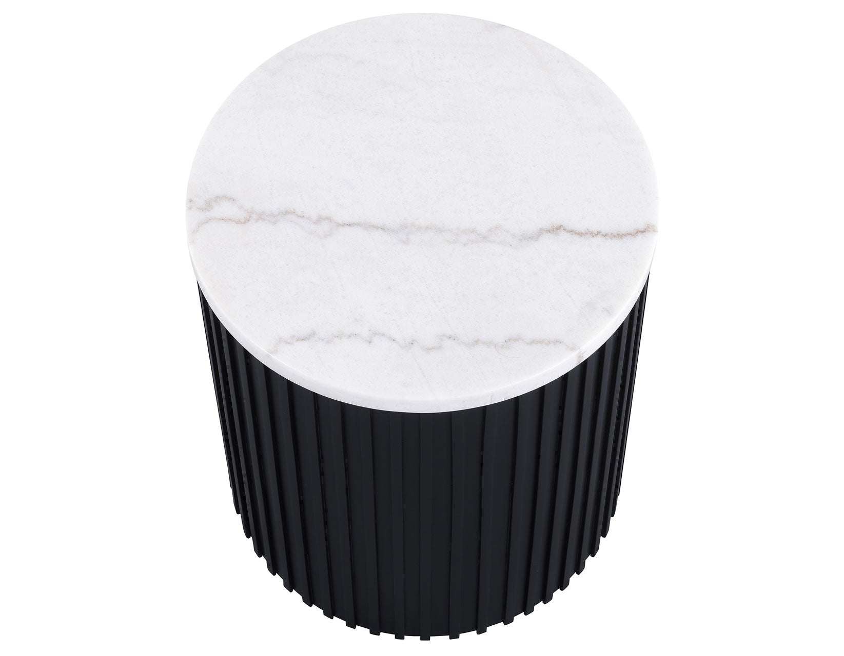 Colvin 18″ Round White Marble Top End Table, Black Finish