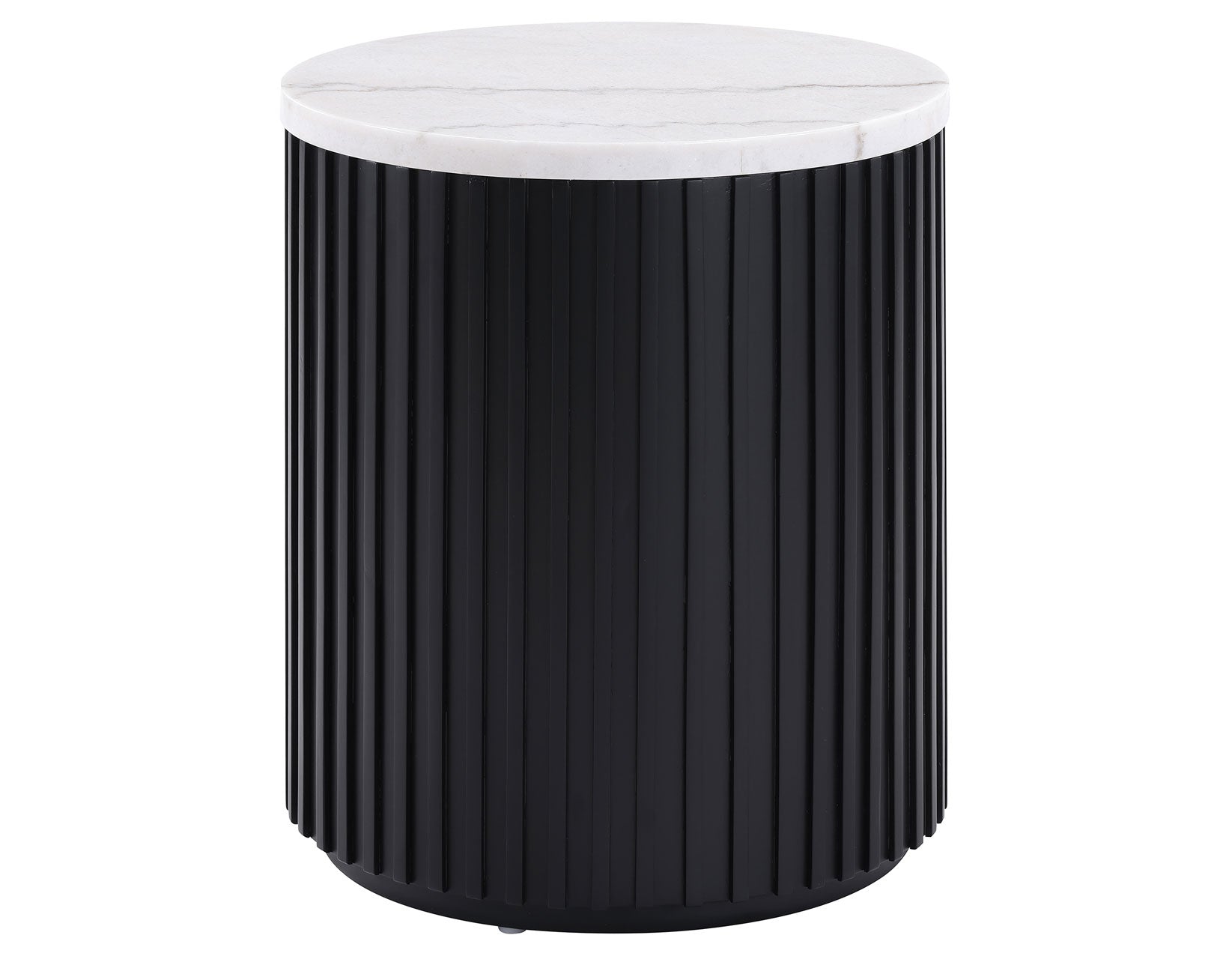 The Colvin 3-Piece White Marble Top Table Set, Black Finish brings timeless elegance with its Art Deco and Empire-inspired styling. The 36″ Round White Marble Top Coffee Table features a lustrous marble surface and black-finished reeded base, combining sleek design with practicality. Equipped with casters for easy mobility, it’s perfect for repositioning or cleaning. Completing the set are two matching White Marble Top End Tables, ideal as side companions to chairs or sofas. This set blends luxury, versatility, and sophistication, effortlessly elevating your living space in minutes.