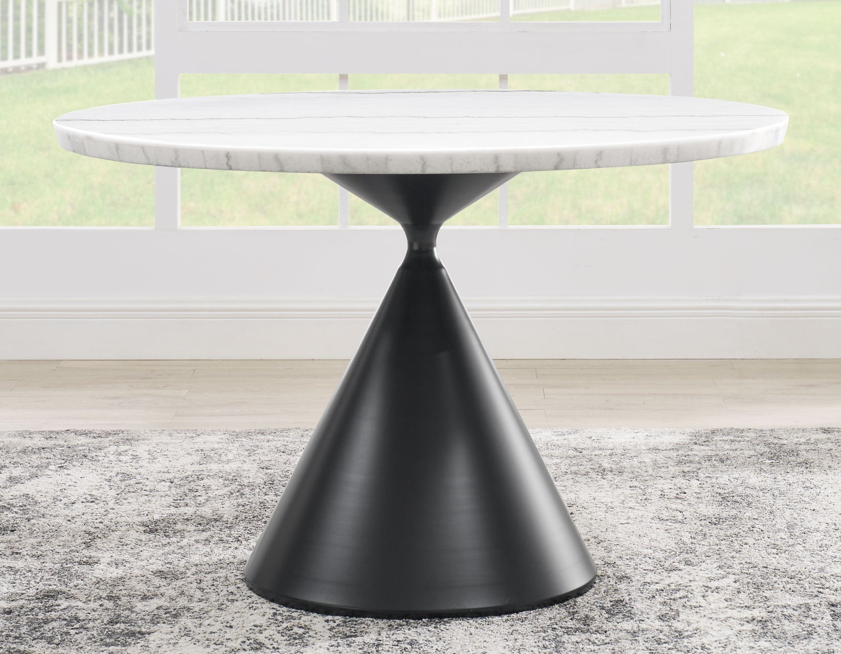 Conrad 5-Piece 48″ Round White Marble Dining Set with Black Base