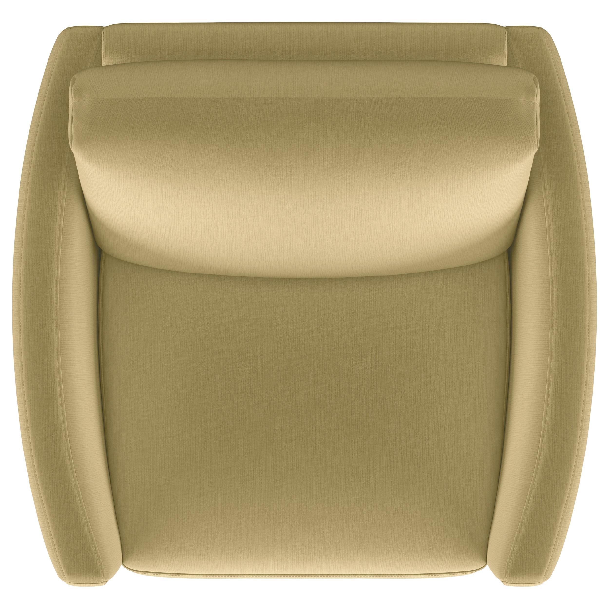 Indulge in opulent comfort with this textured velvet chair. Its reversible feather blend seat and back cushions, complemented by curved arms and gold stainless steel legs. Smooth upholstery and lustrous details blend simplicity with timeless splendor, making this piece a perfect focal point for refined interiors. With its inviting profile and graceful presence, it elevates both style and relaxation.
