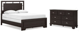 Covetown Queen Panel Bed with Dresser in Dark Brown