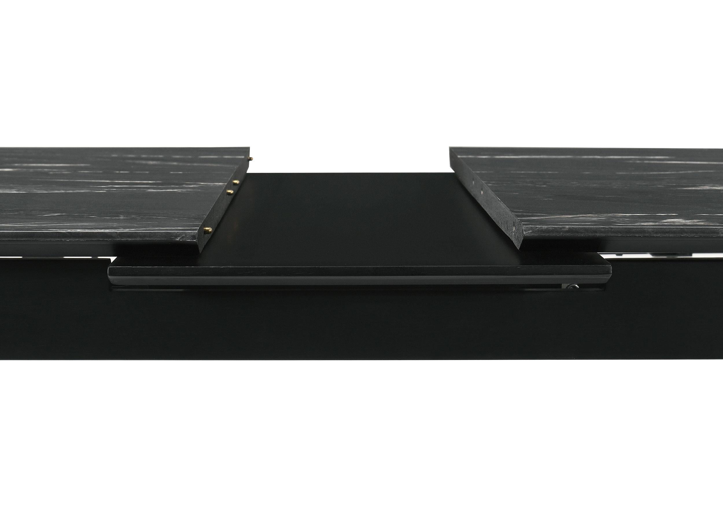 Envision your gatherings transformed with this exquisite dining set, where the sleek lines of modern design meet the timeless allure of faux marble. The table's luxurious black marble-esque top is a symphony of style, supported by fin-style legs that ground it with a touch of sophistication. As your ensemble grows with the seamless self-storing extension, the dining tableau adapts, offering a spacious stage for both feasts and intimate conversations. Accompanying the table, the Danish Y-shaped wishbone chairs, dressed in black and beige, whisper of coastal breezes and relaxed elegance, their form both a nod to tradition and a statement of contemporary grace. This dining set doesn't just host meals; it curates experiences.