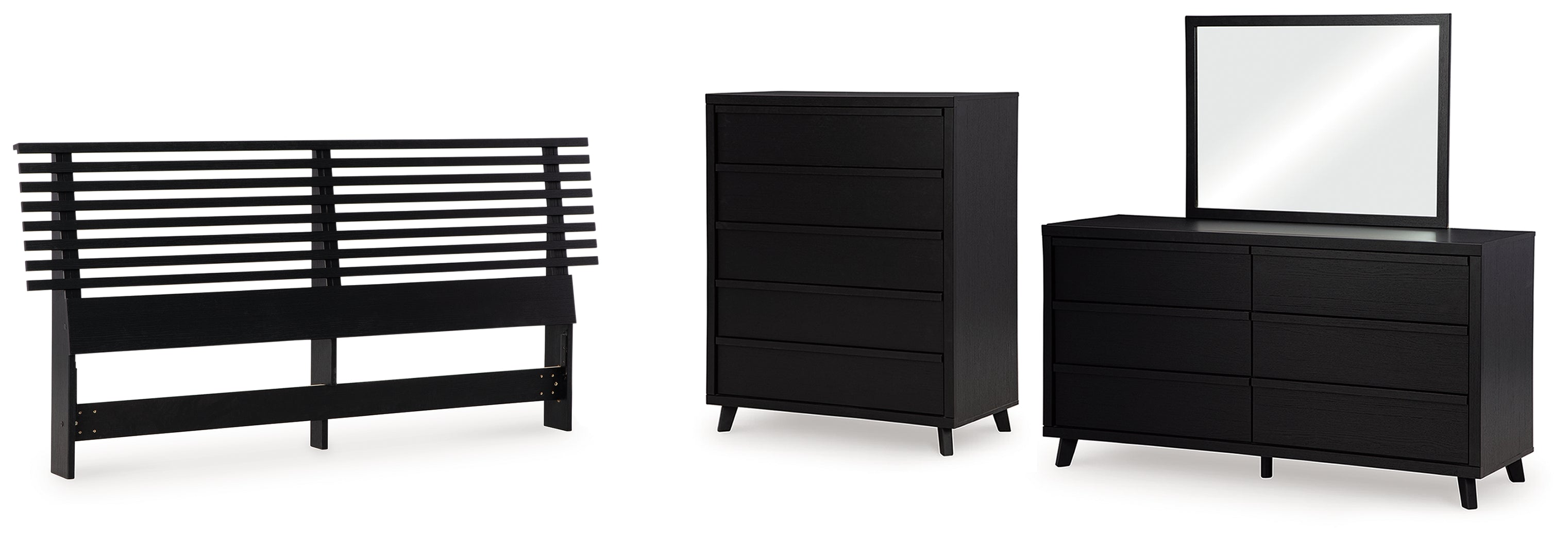 Danziar King Panel Headboard with Mirrored Dresser and Chest in Black