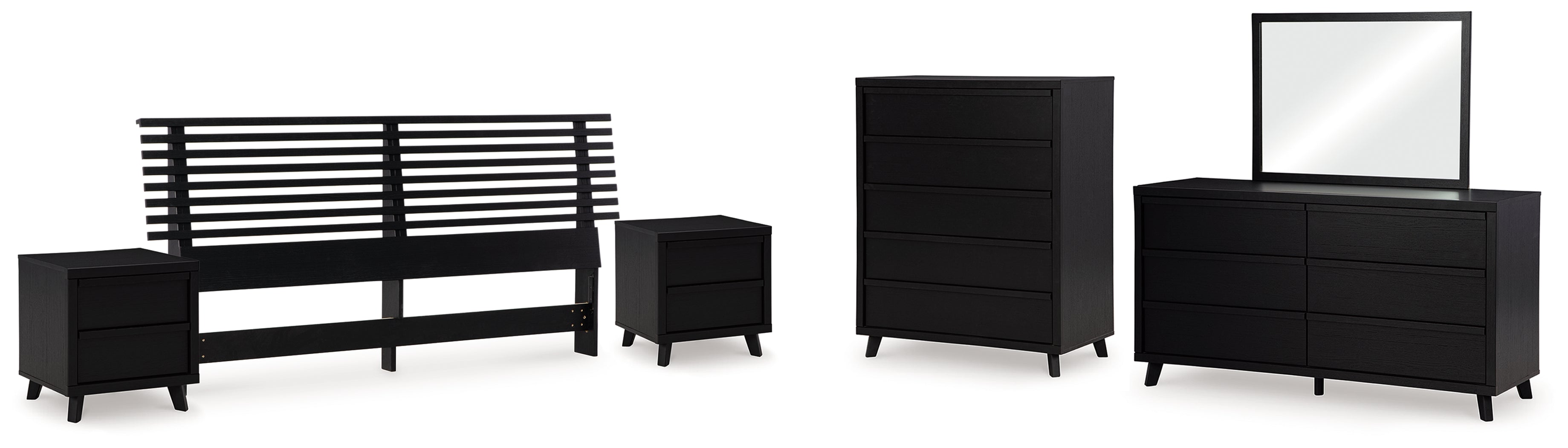 Danziar King Panel Headboard with Mirrored Dresser, Chest and 2 Nightstands in Black