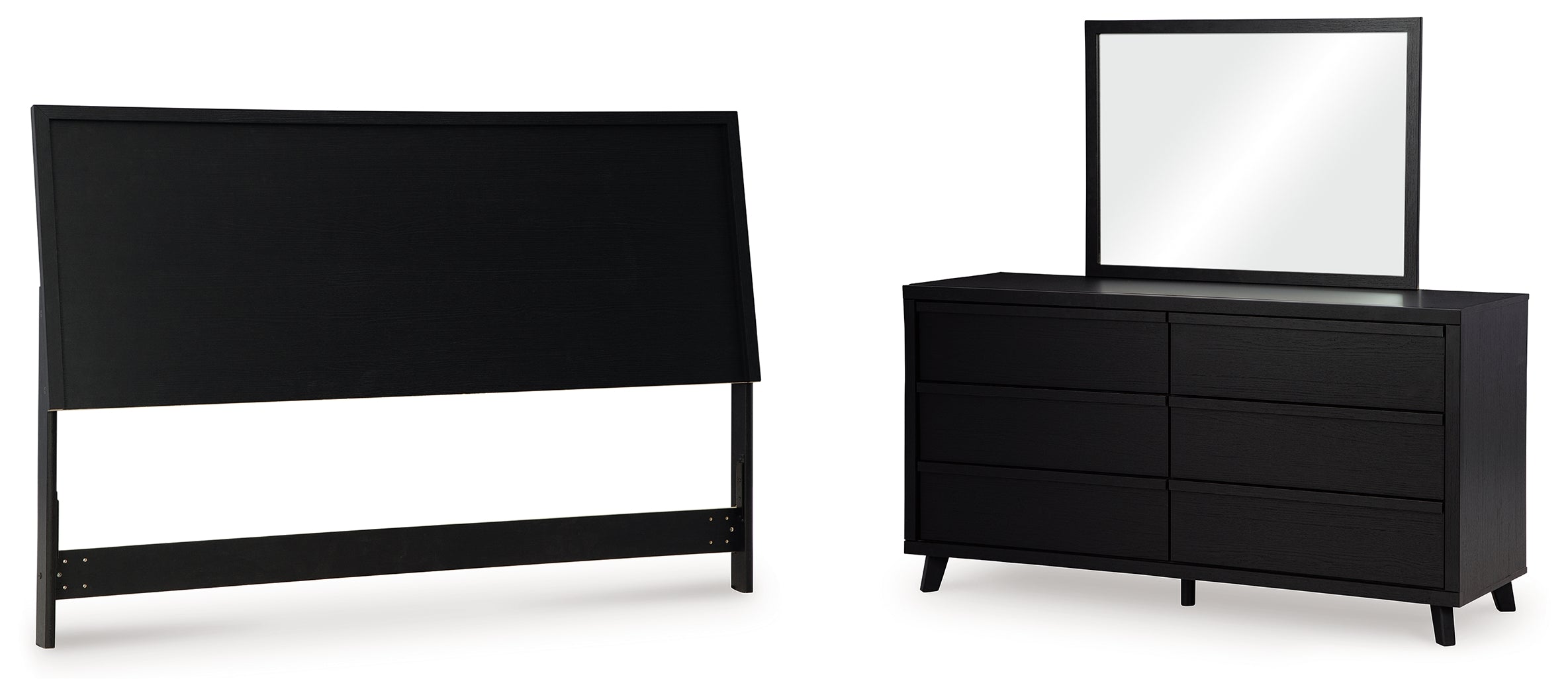 Danziar King Panel Headboard with Mirrored Dresser in Black from Ashley - Luna Furniture