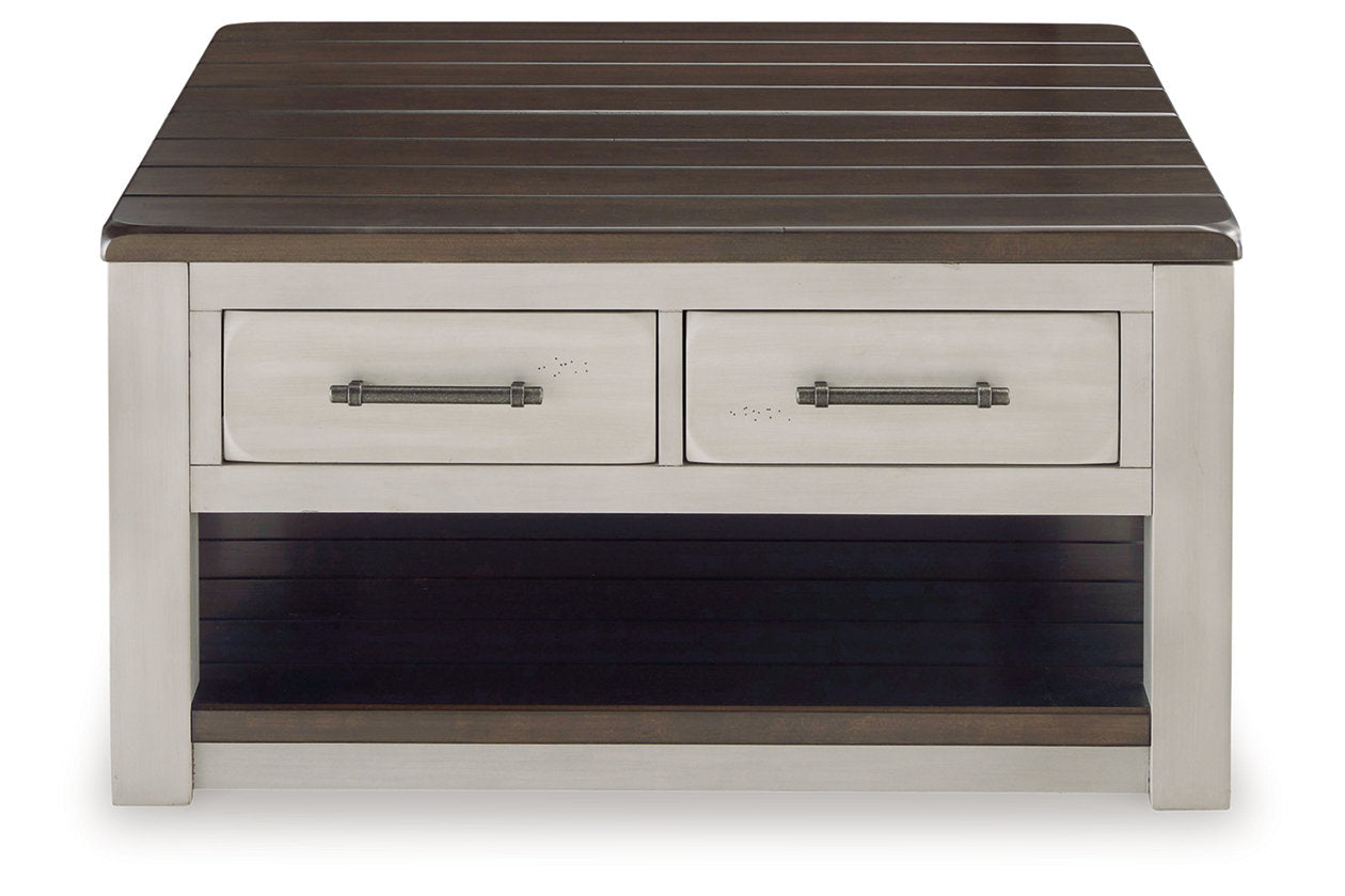Make a farmhouse-inspired statement with this coffee table. Beautifully crafted to stand the test of time, the planked look and clean two-tone finish lend a relaxing vintage feel. A clever lift-top section and spacious storage drawers double up on form and function. 2 Matching chairside end tables included. Luna Furniture introduces Darborn Lift-top Coffee Table and 2 Chairside End Tables to enhance the beauty of your living spaces.