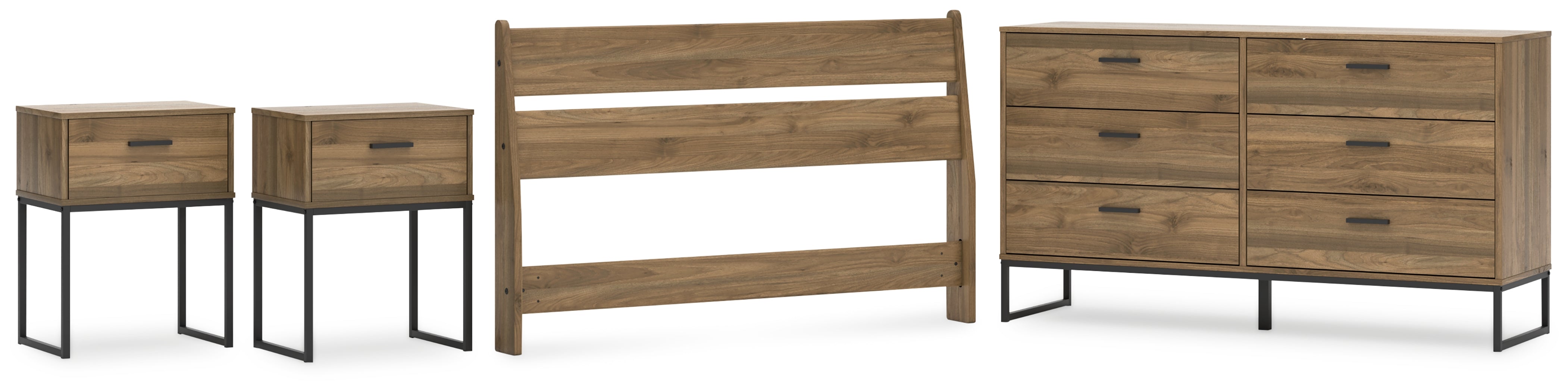 Deanlow Full Panel Headboard with Dresser and 2 Nightstands in Honey
