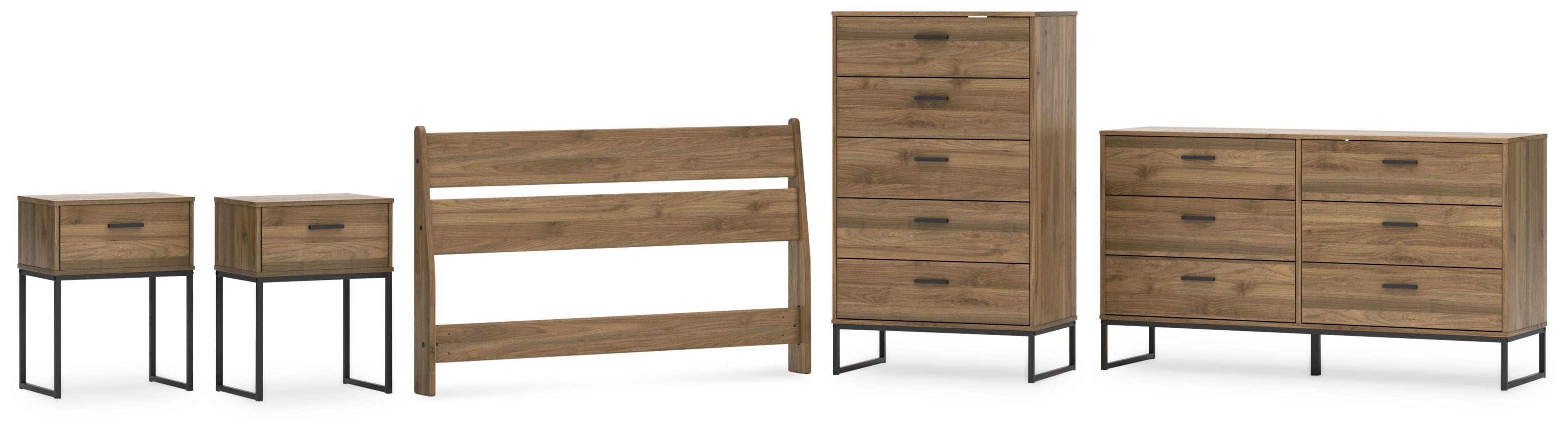 Is your bedroom in need of a refresh? And do you love mid-century modern design? Then this bedroom package is calling your name. Simple lines and an industrial-chic vibe will seal the deal. Settle into this set's laid-back style, and plan to stay for a while.